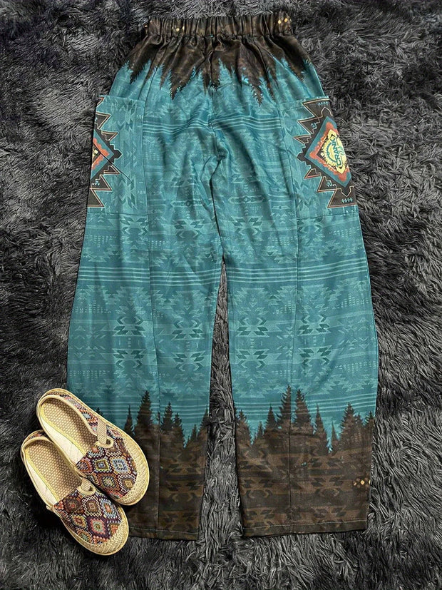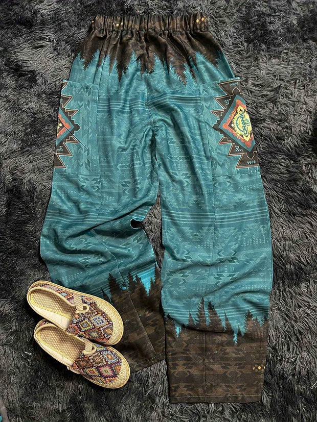 Women's Western Retro Ethnic Style Printed High Waist Wide Leg Pants