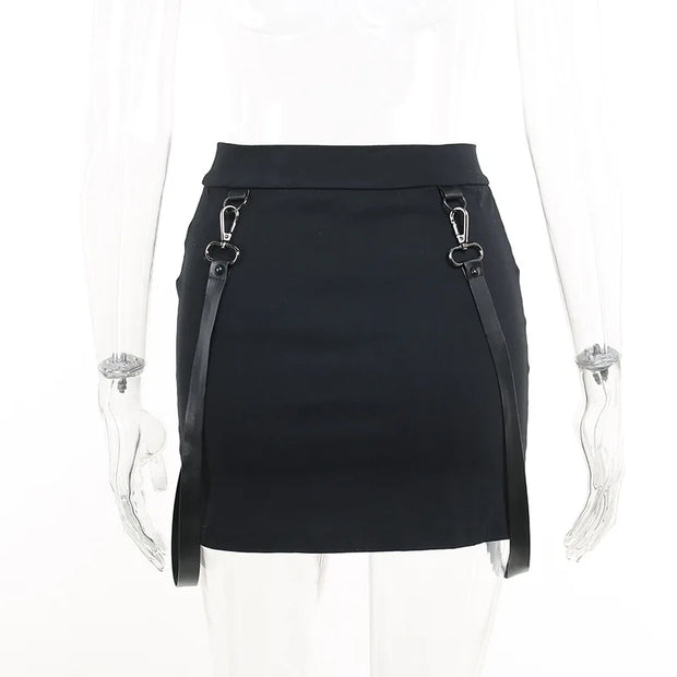 Y2K Black Skirt Women Streetwear Gothic Harajuku Ruffle High Waist Bandage A-line Mini Skirt Goth Punk Grunge Clothes