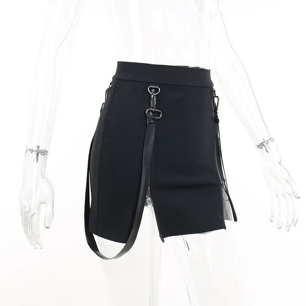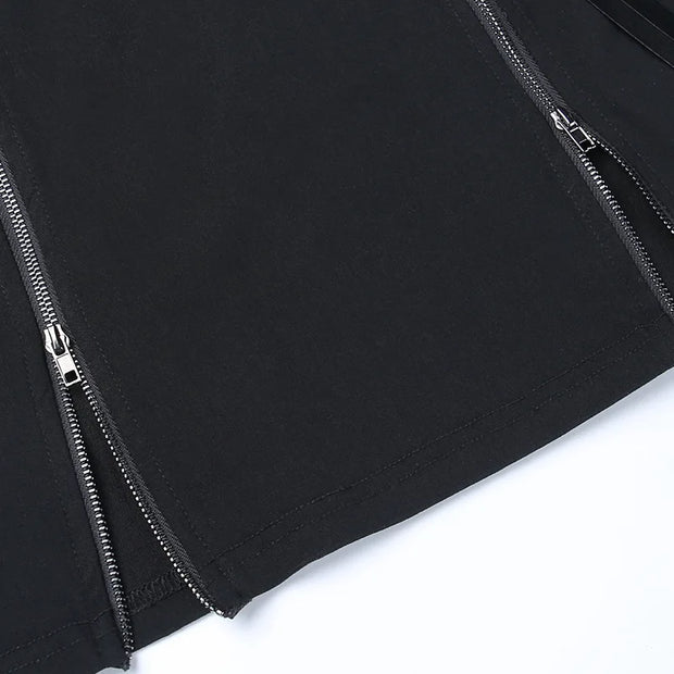 Y2k Skirt Dark Double Zipper Bag Hip Split Gothic Design Tight Skirt Harajuku Black Gothic Bag Hip Skirt Kawaii Vintage