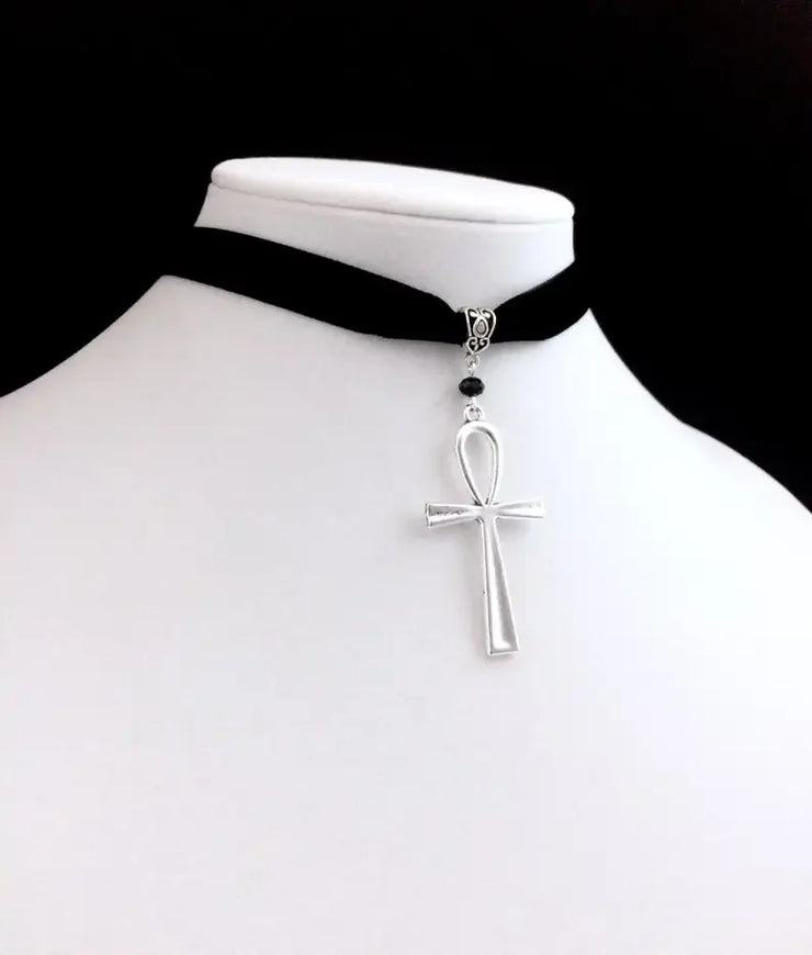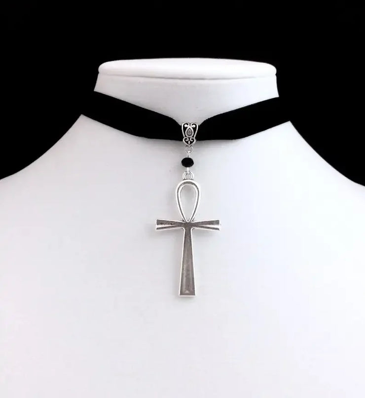 Gothic Ankh Necklace Black Choker Egyptian Grunge Ankh Eternal Life Necklace Witchy Statement Jewelry Pendant Women Gift