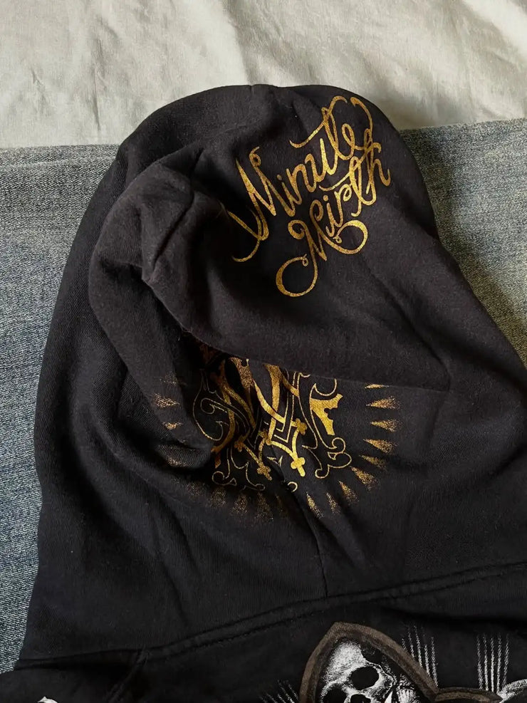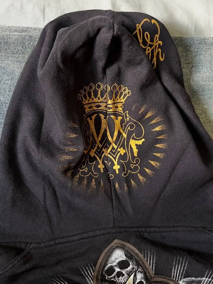 Gothic Affliction Hoodie New Retro Wing Pattern Printing Oversize Zipper Coat Men Women Hip Hop Personality Casual Sweatshirt