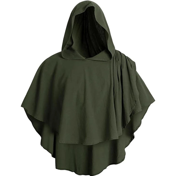 Medieval Hooded Cloak Coat for Men Medieval Cape Costume Adult Wicca Worship Pagan Monk Robe Role Playing Short Cape