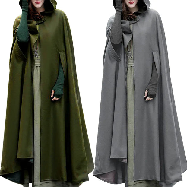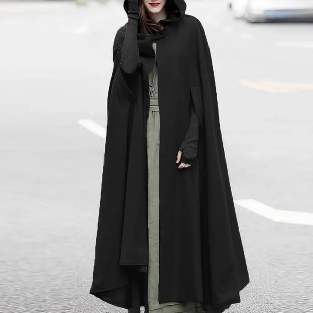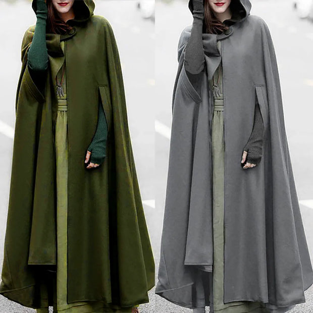 Winter Cloak Hooded Trench Coat Women Gothic Cape Women Trench Coat Open Front Cardigan Jacket Coat Cape Cloak Poncho Plus