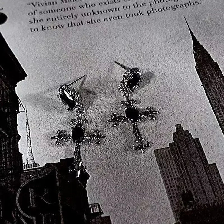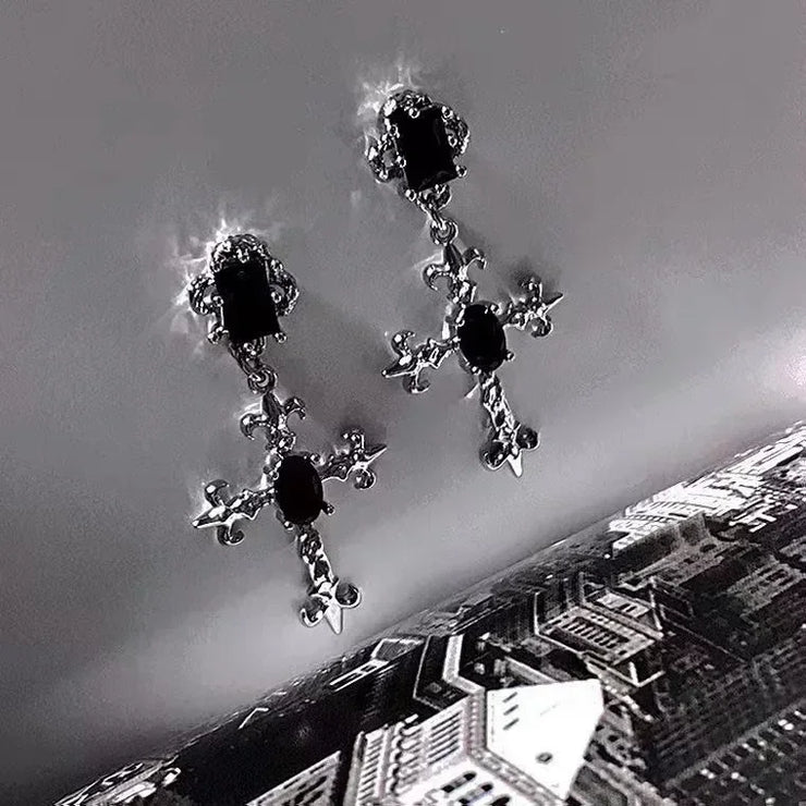 Gothic Cross Black Drill Drop Earrings Women Punk Halloween Jewellery Creativity Fashion Gorgeous Statement Jewelry Girl Gifts