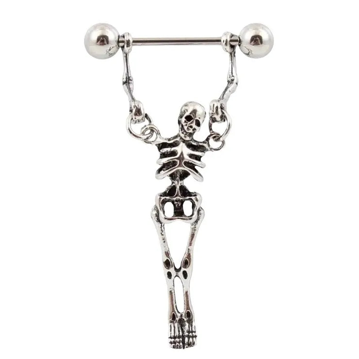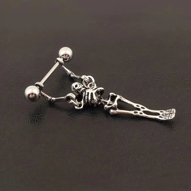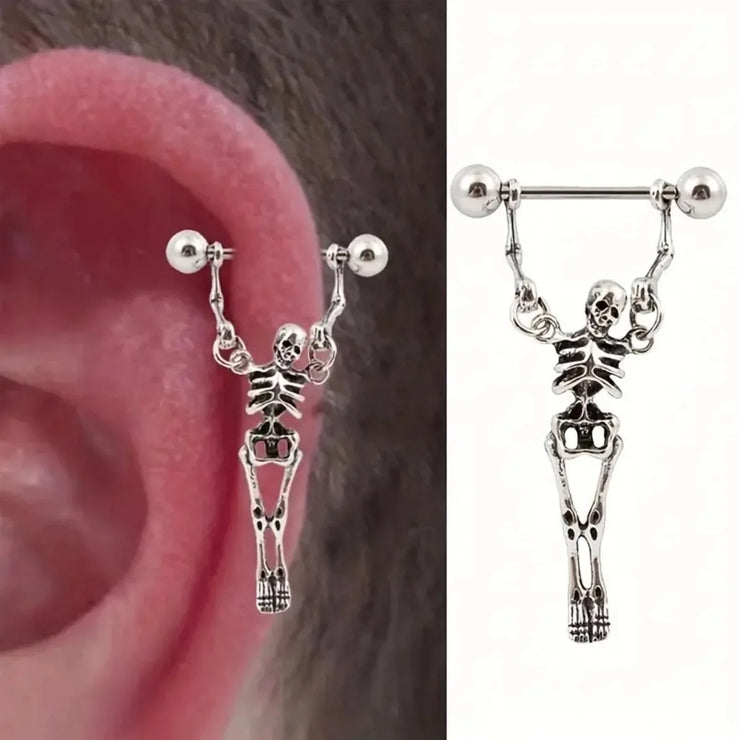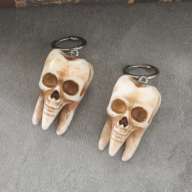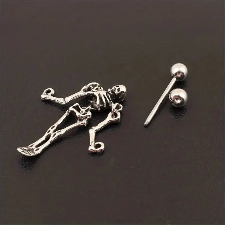 Gothic Halloween Tooth Skull Earrings for Women Men Punk Street Barbell Skeleton People Earrings Spooky Party Jewelry Gift