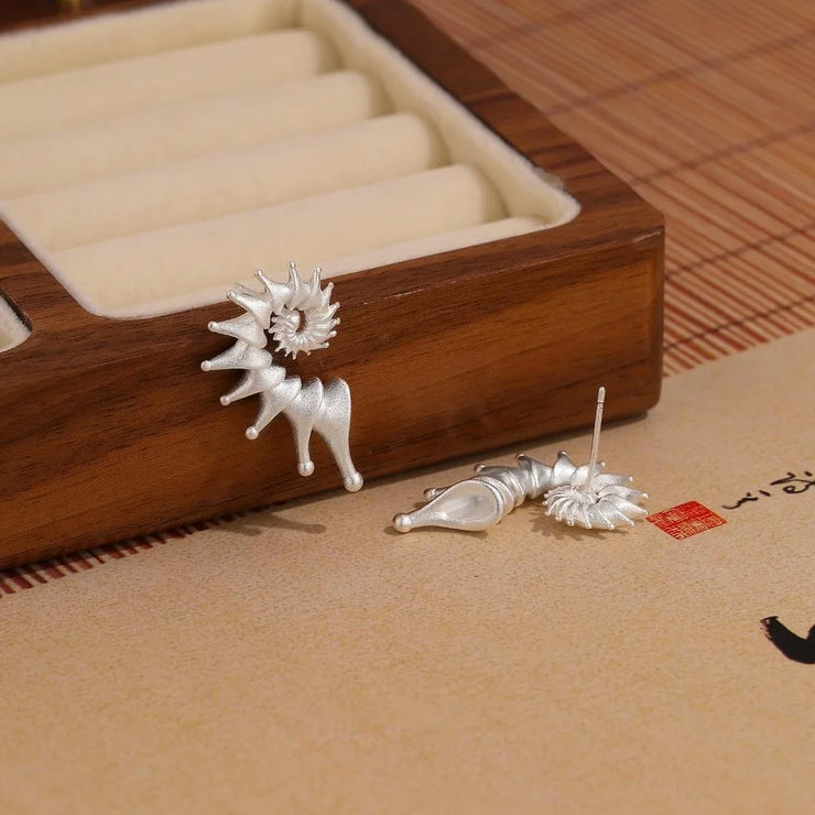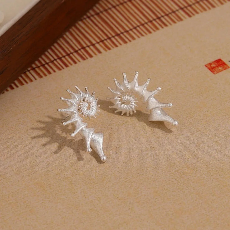 Gothic Personality Stereo Conch Ancient Silver Stainless Steel Stud Earrings for Men Women Hallowmas Punk Jewelry Accessory Gift