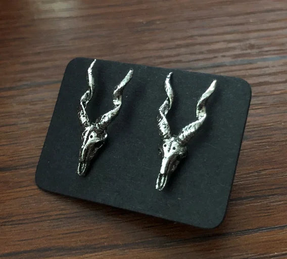 Gothic Rams Skull Earring Stud Antelope Skeleton Animal Goat Head Horn Halloween Witch Goth Jewelry