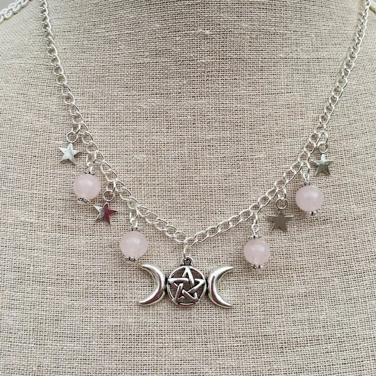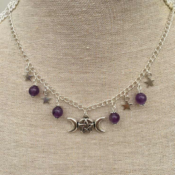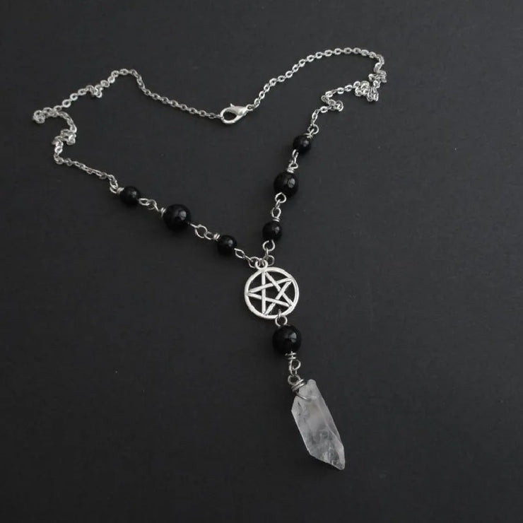 Gothic Beaded Pentagram Necklace Crystal Necklace Goth Wiccan Pendant Witchy Punk Jewelry Women Statement Gift Charm Mystical