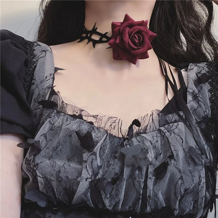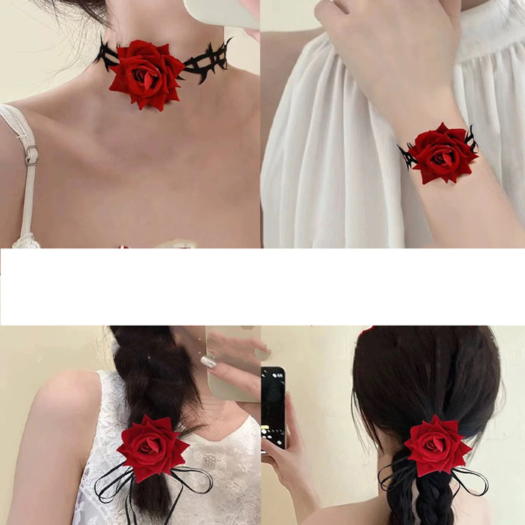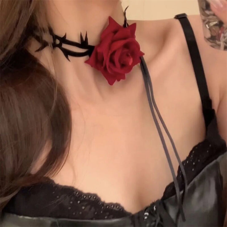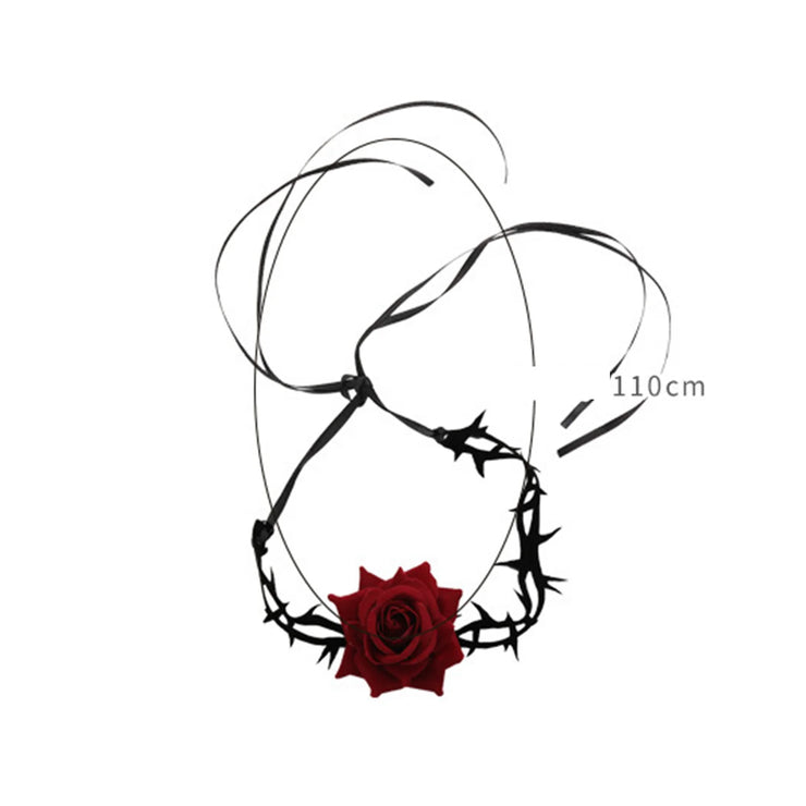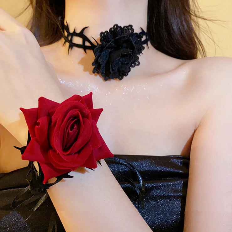 Gothic Big Rose Flower Clavicle Chain Necklace Women Wed Bridal Sexy Adjustable Choker Mariage Jewelry Halloween Accessories