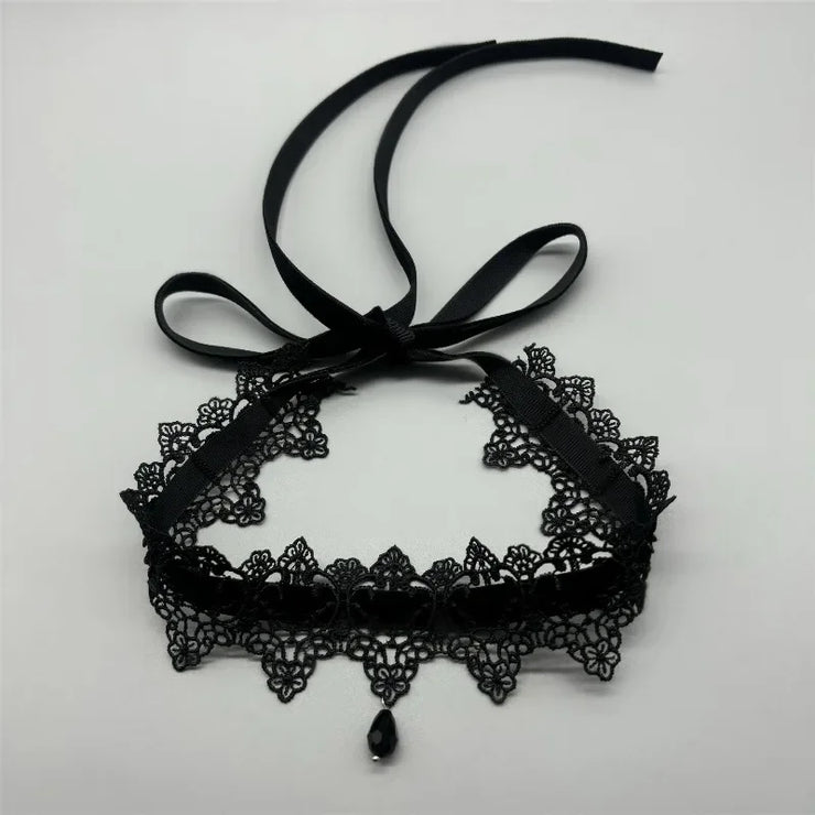 Gothic Collar Necklace Elegant Black Lace Bowkot Choker Necklace Y2K Choker Short Chain Necklace Fashion Jewelry