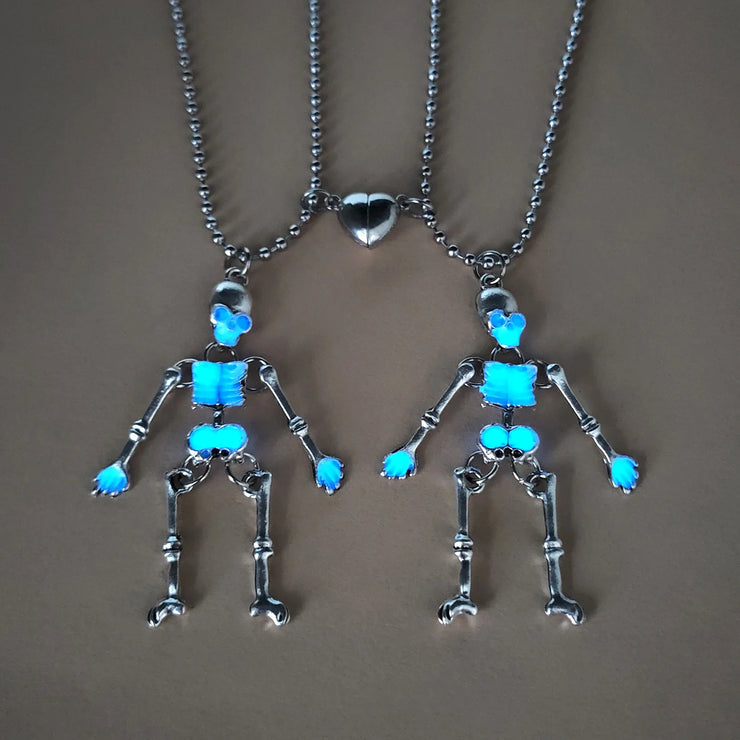 Gothic Luminous Skull Hollow Necklace for Women Fashion Halloween Skeleton Couple Pendant Necklace Party Jewellery Accessories