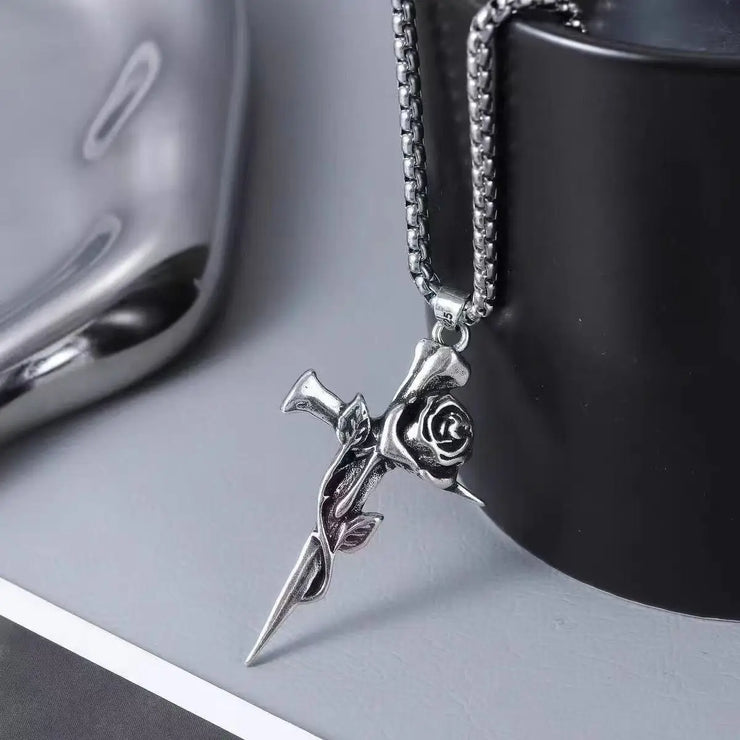 Gothic punk rose men's necklace fashionable hip-hop retro cross pendant popular jewelry decoration gift