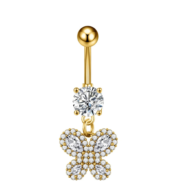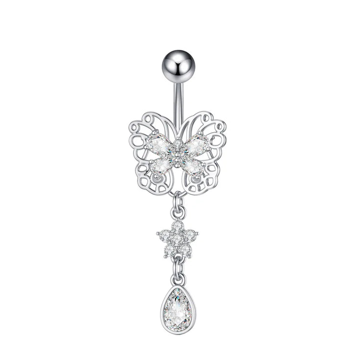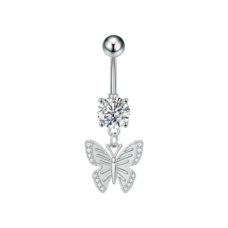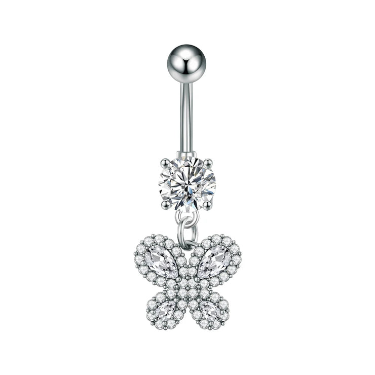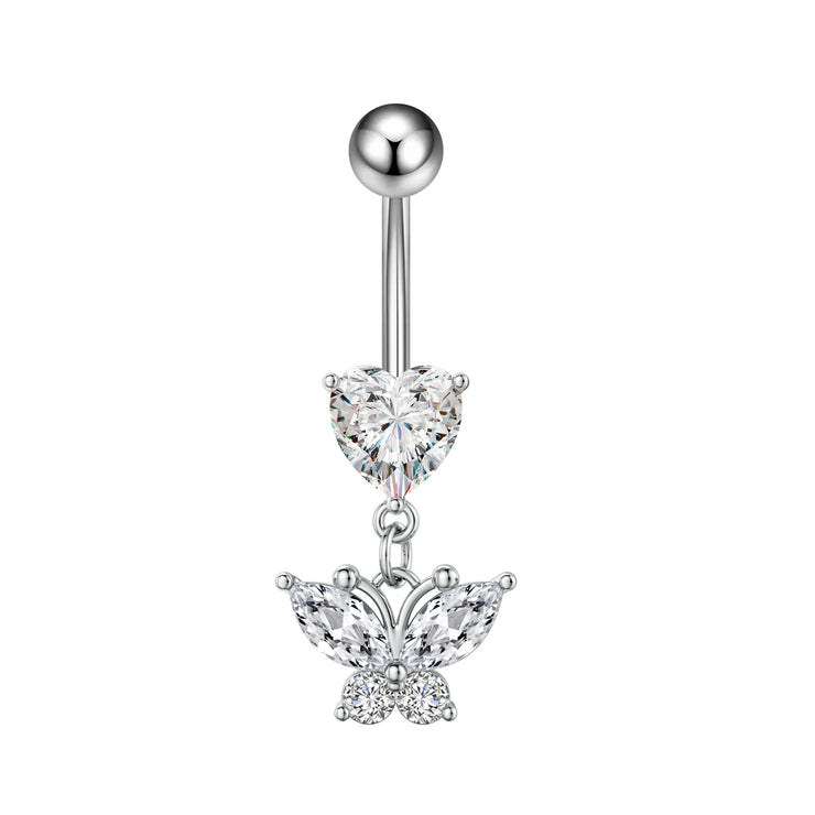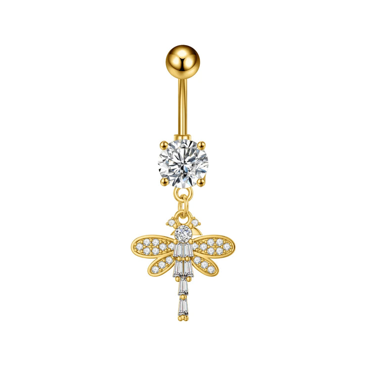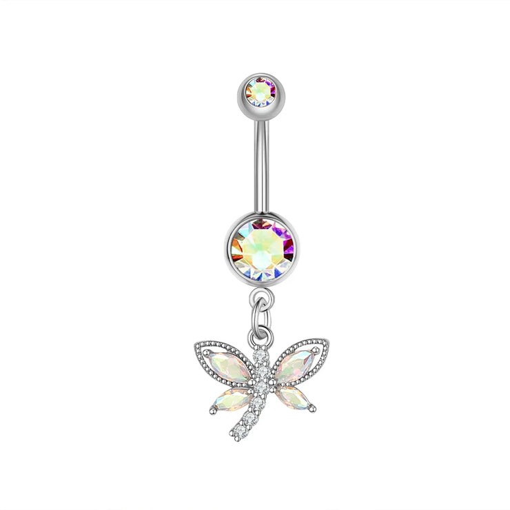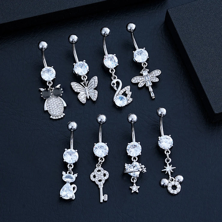 Elegant Dangled Belly Piercing Jewelry Fashion Dragonfly Owl Butterfly Shaped Curved Navel Rings Stainless Keys CZs Belly Ring