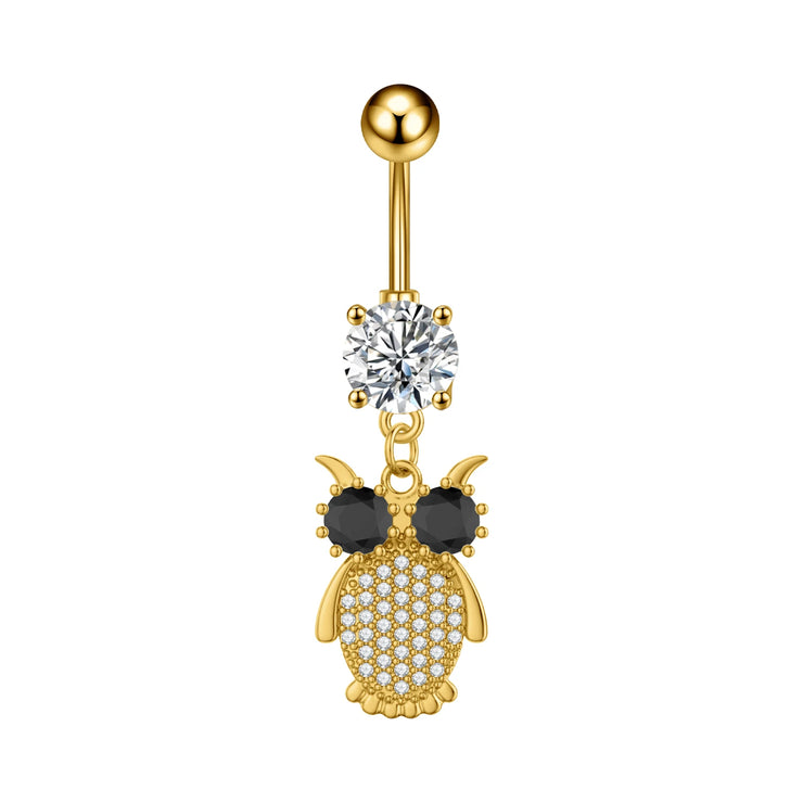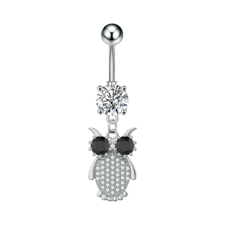 Style: TRENDY,Owl Crystals Dangled Belly Button Ring