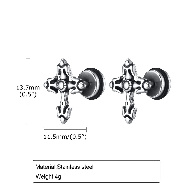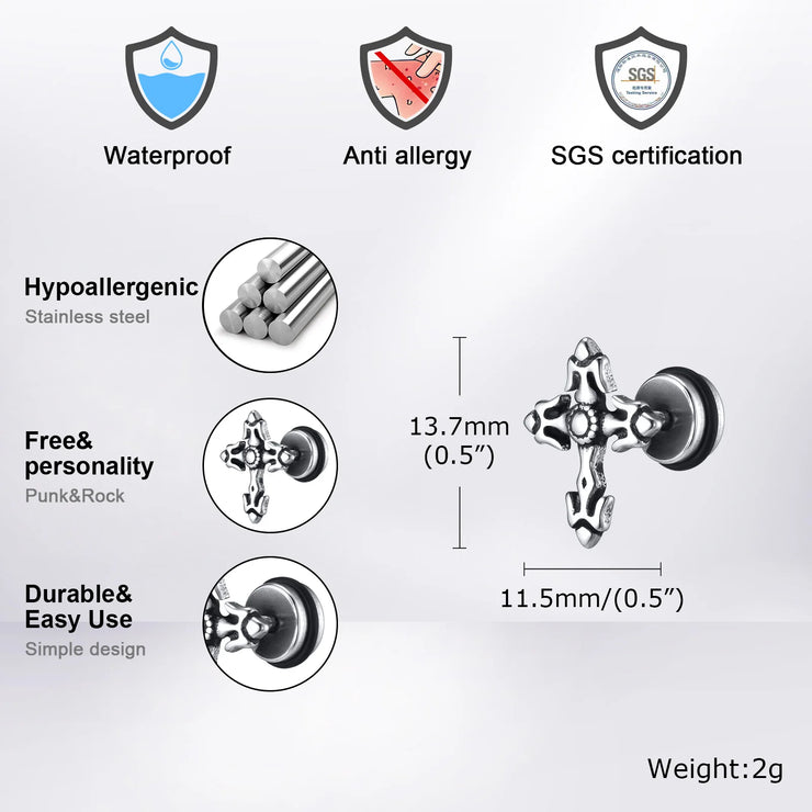 Gothic Cross Earrings for Men Boys,Waterproof Stainless Steel Stud Earrings,Rock Punk Prayer Jewelry Halloween Gifts