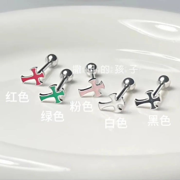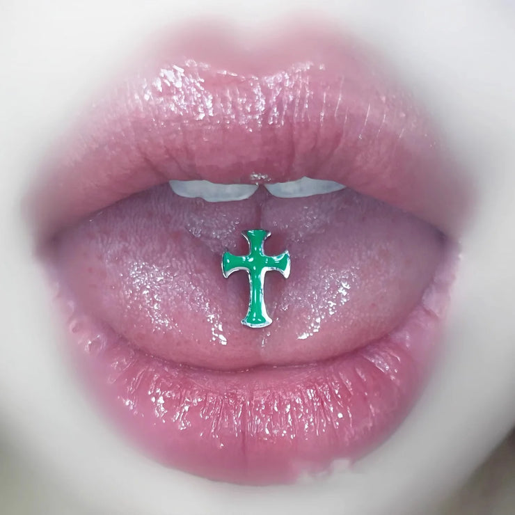 Multi-color Gothic cross tongue ring titanium steel piercing tongue jewelry cool punk style body piercing jewelry
