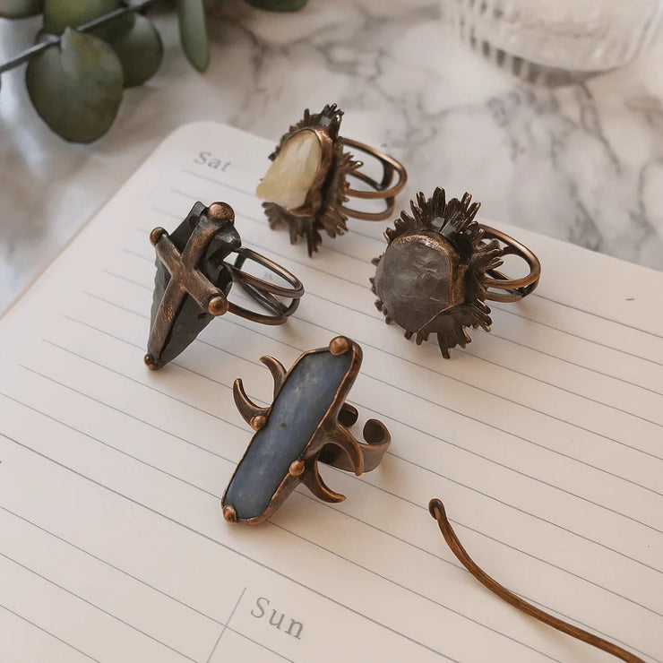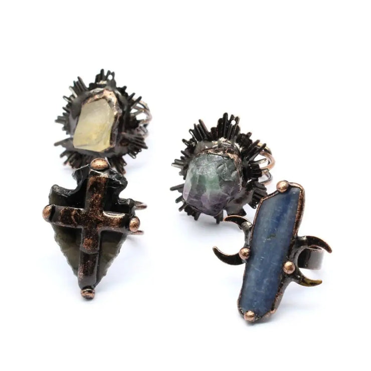 Gothic Natural Crystal Rings Boho Hypoallergenic Adjustable Rings Alloy Unique Design Raw Stone Rings Alternative Fashion