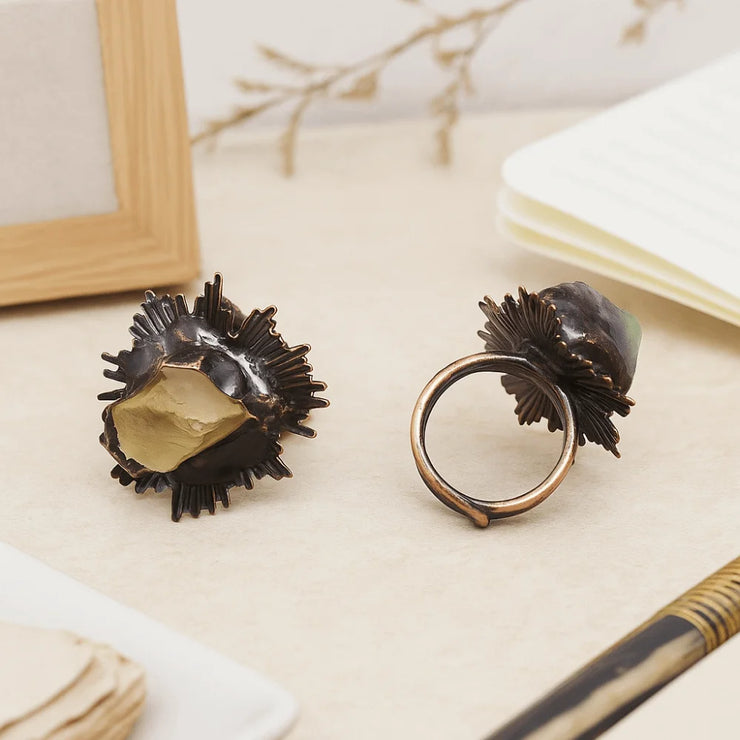 Gothic Natural Crystal Rings Boho Hypoallergenic Adjustable Rings Unique Design Alloy Raw Stone Rings Alternative Fashion