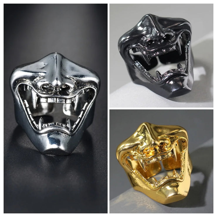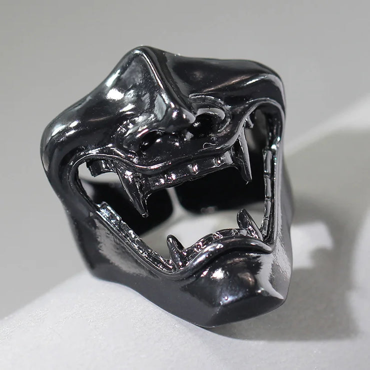 Gothic Teeth Vampire Ring For Men Women Retro Creative Hiphop Half Face Skull Mask Rings Punk Party Jewelry