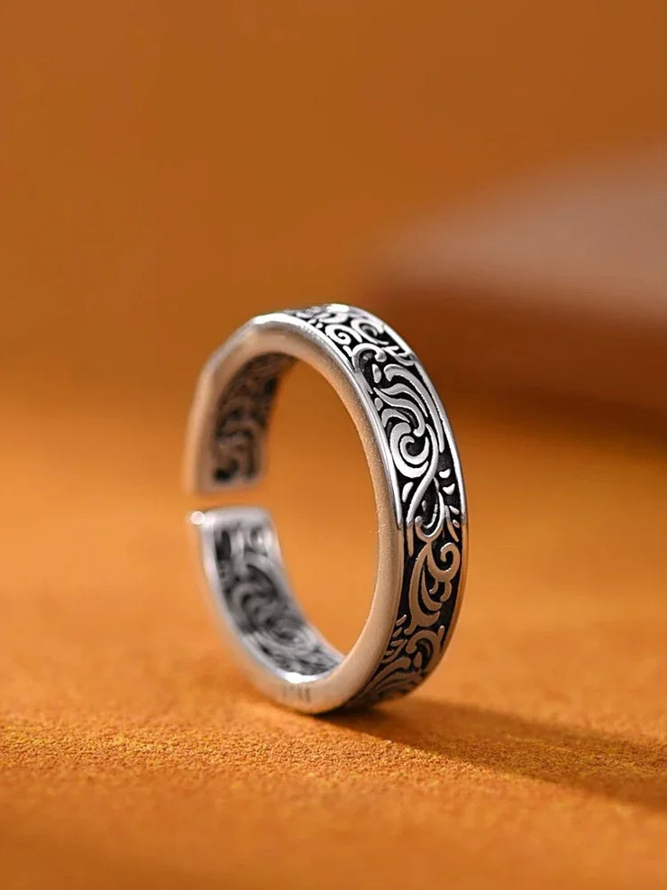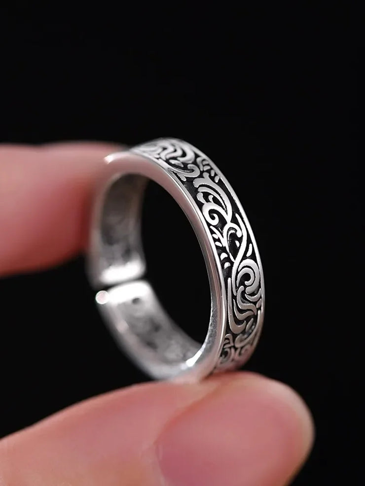 New Silver Color Retro Old Tang Grass Pattern Rings for Women Classic French Boys' Index Finger Ring Gift Gothic Jewelry