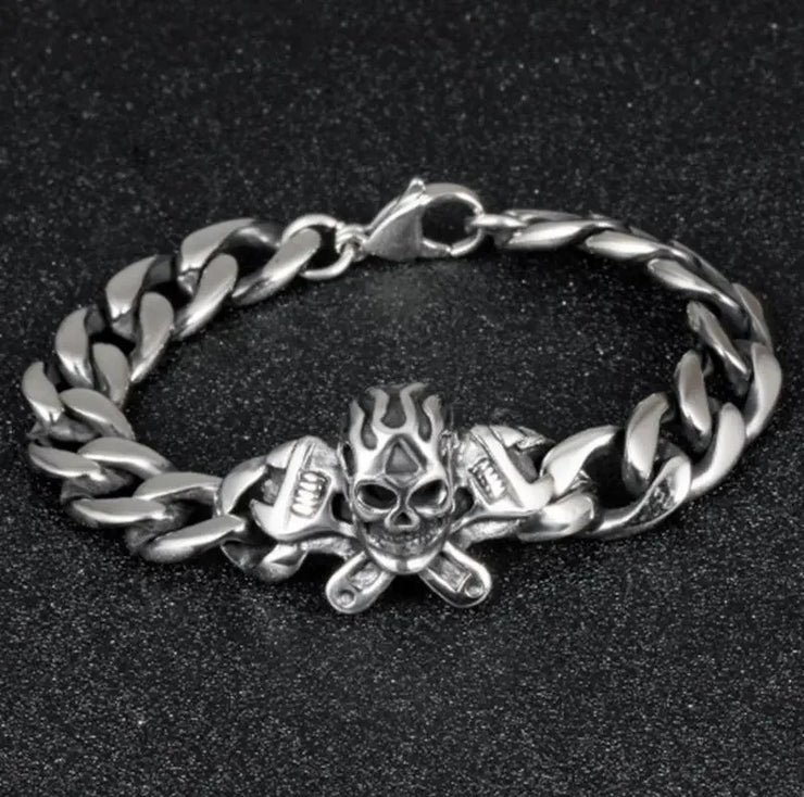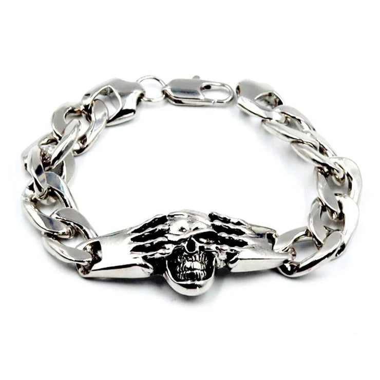 Gothic Style Silver Color Skull Chain Bracelet for Men Rock Party Jewelry Biker Bracelet Gift