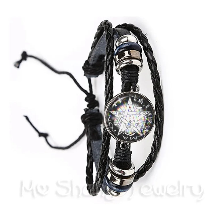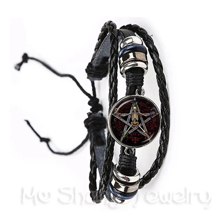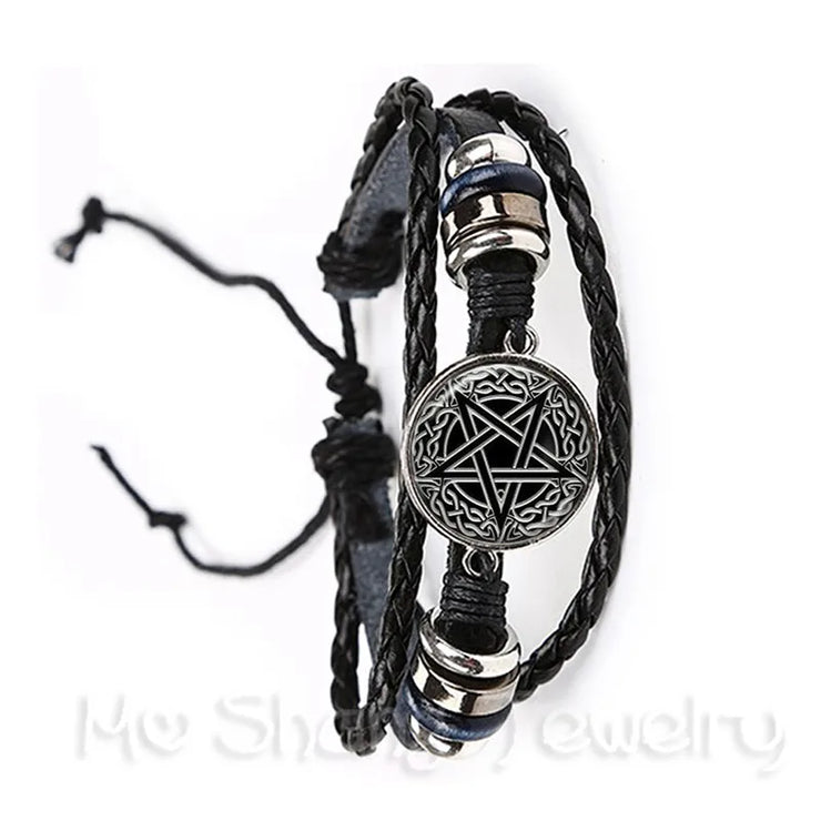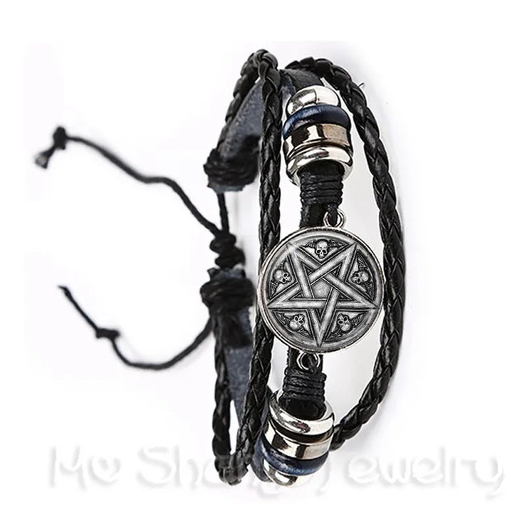 Satanic Baphomet Pentagram Bracelet Gothic Black/Brown Leather Bangle Satanism Evil Occult Pentacle Jewelry Pagan Charm Gift