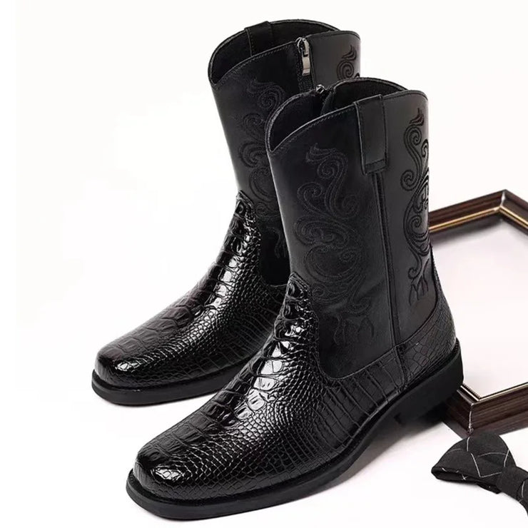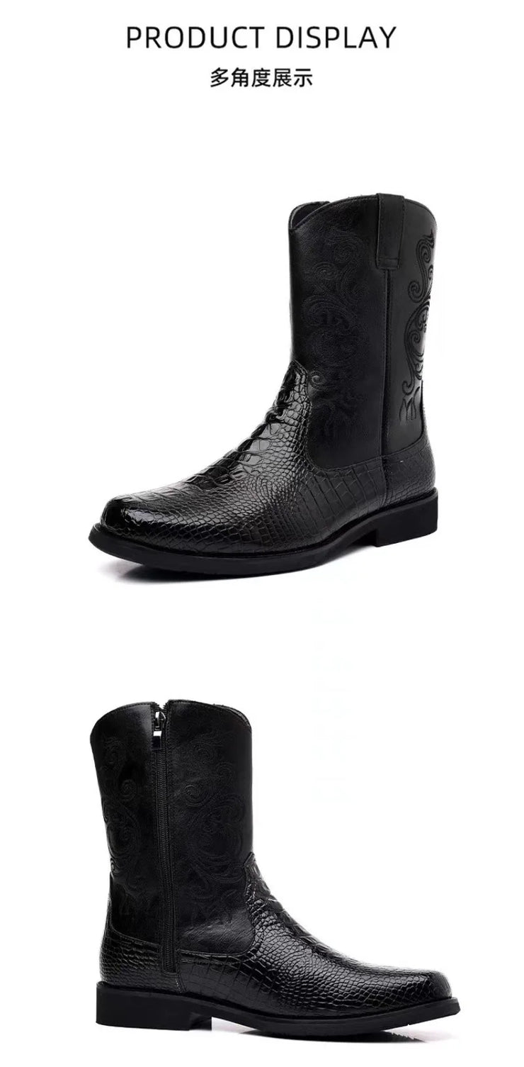 Classic Men's Boots British Retro Riding Boots Man Embossed Leather Embroidery Knight Boots Mid-Calf Style Casual Shoes Man New