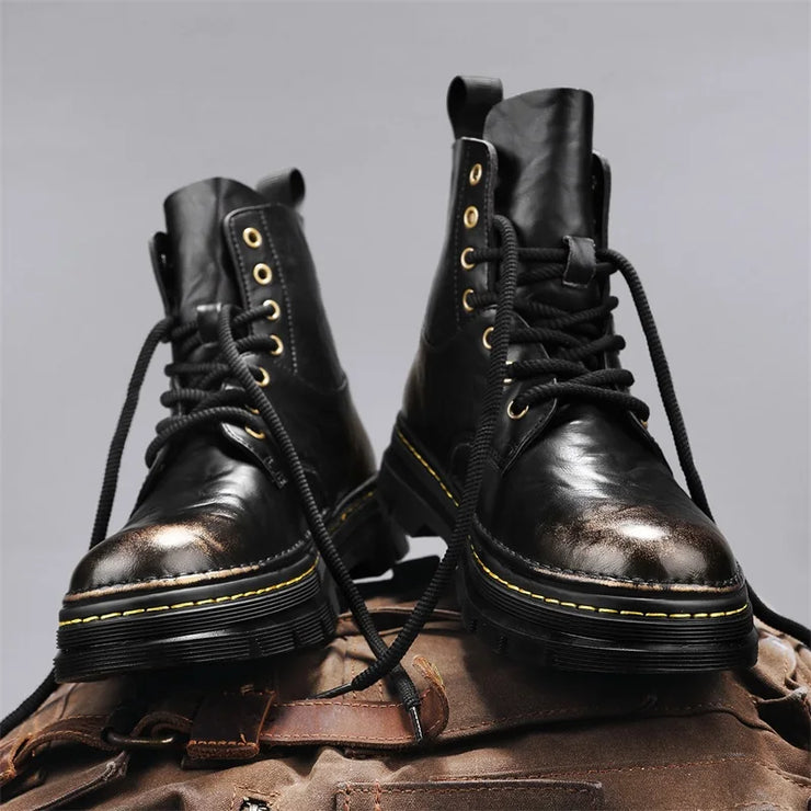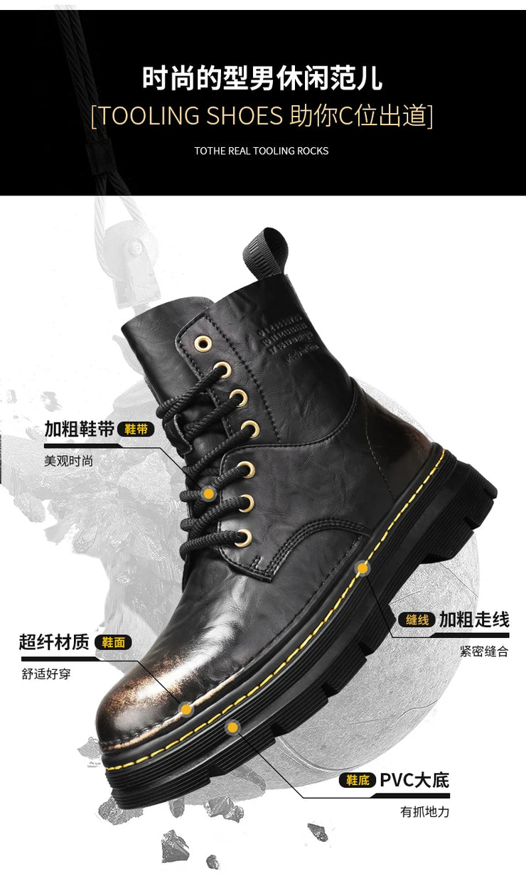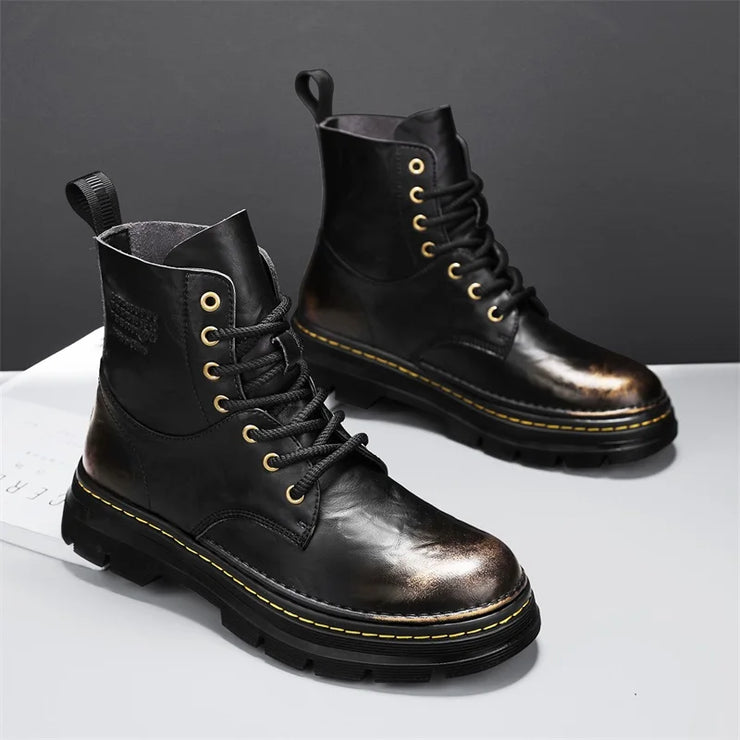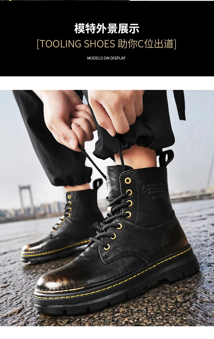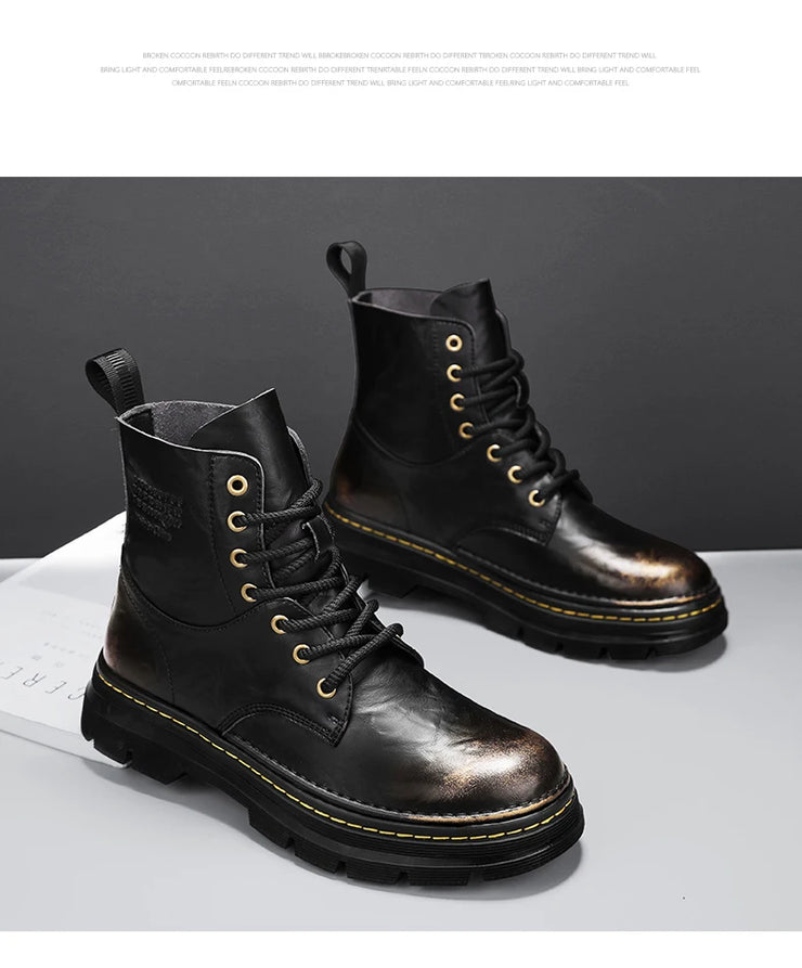 Men's Ankle Boots, Retro British High-top Men's Boots, High-quality Leather Shoes, 2025 New Style Outdoor Men's Motorcycle Boots