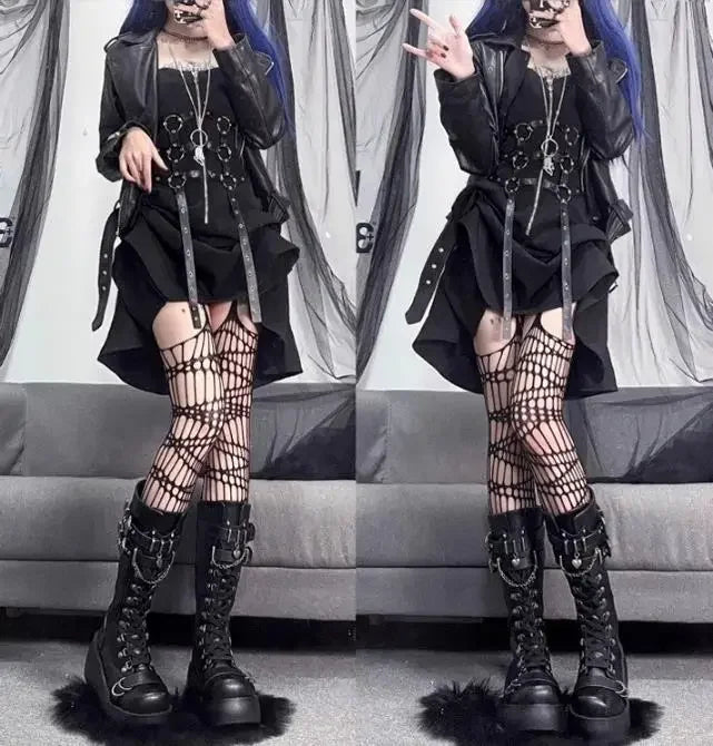 Motorcycle Boots Platform Boots For Women Wedges Knee High Black Lace Up Fashion Goth Gothic Boots Punk Shoes Girls Winter 2023