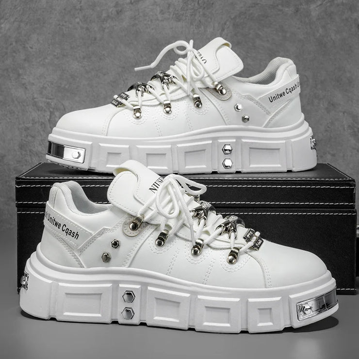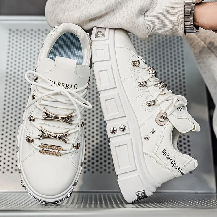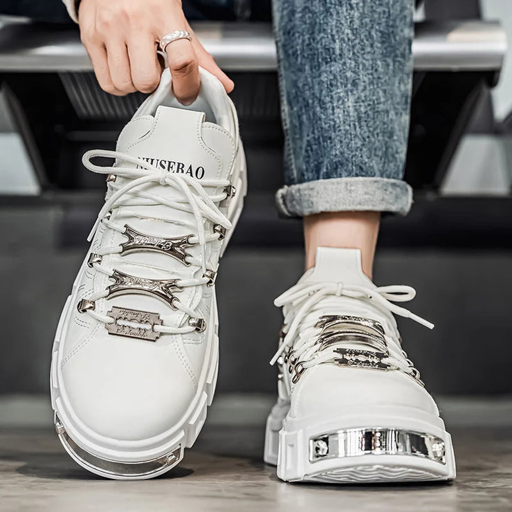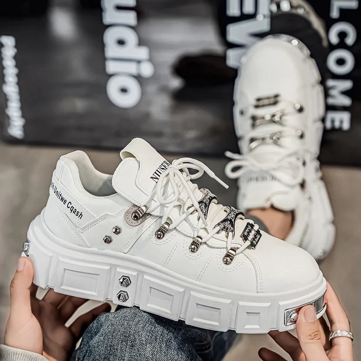 Women's Gothic Woman Sneakers Ankle Boots Punk Style Black Shoes Rock Metal Decor Lace-up Heel Height Platform Shoes