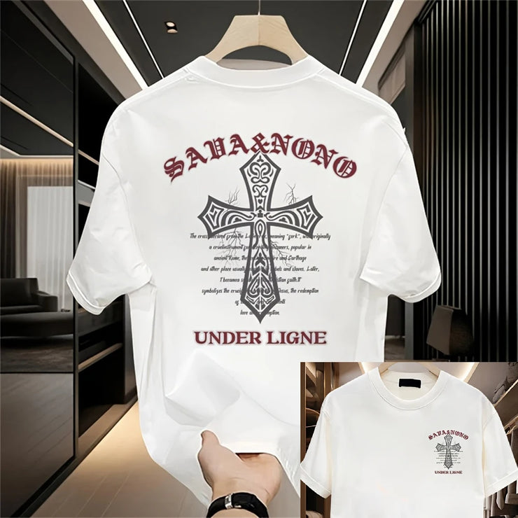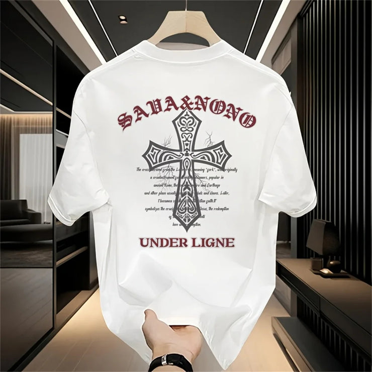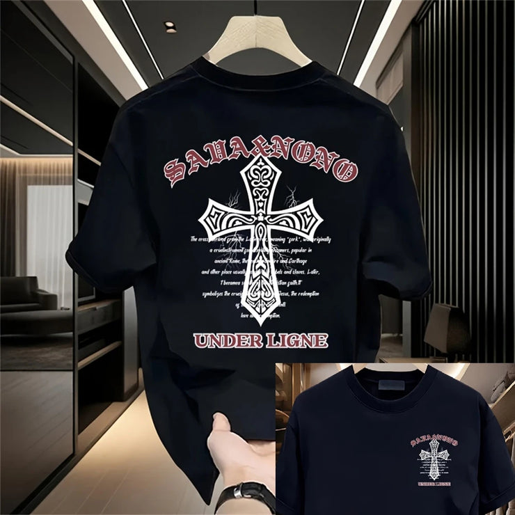 Gothic Style Men's T Shirt Harajuku Cross Printed Punk Casual Short Sleeve T Shirts Hip-hop Loose Streetwear Tops Men Clothing
