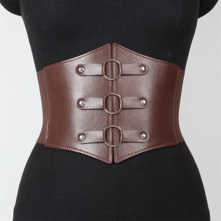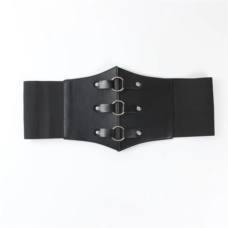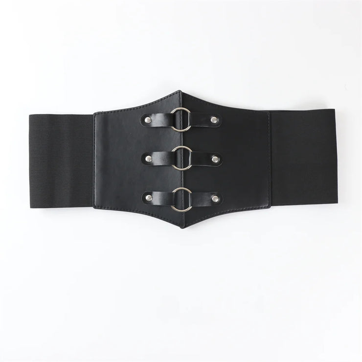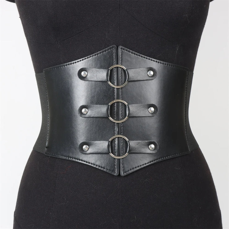 Fashionable Gothic Corset Belt Triple Buckle with Black Rivet Studs Elastic Waspie Waistband for Punk Women Perfect for Coats
