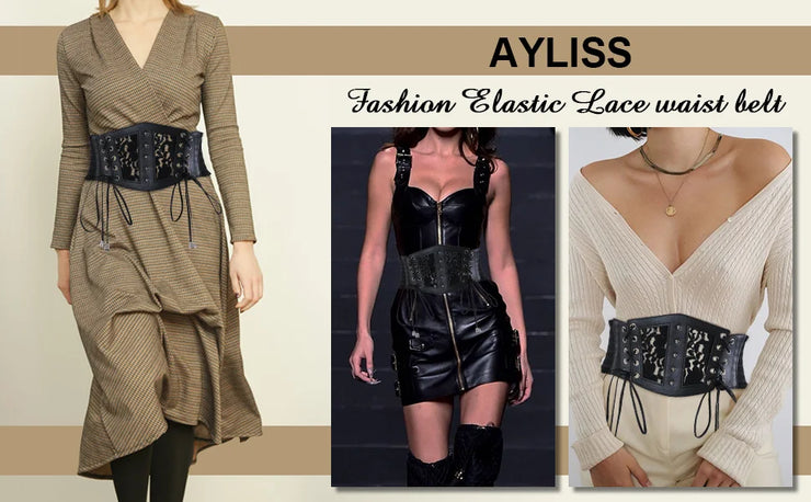 Women Corset Waist Belt Lace-up Cinch Belt Tied Corset Elastic Wide Waist Dress Belt Gothic Costume