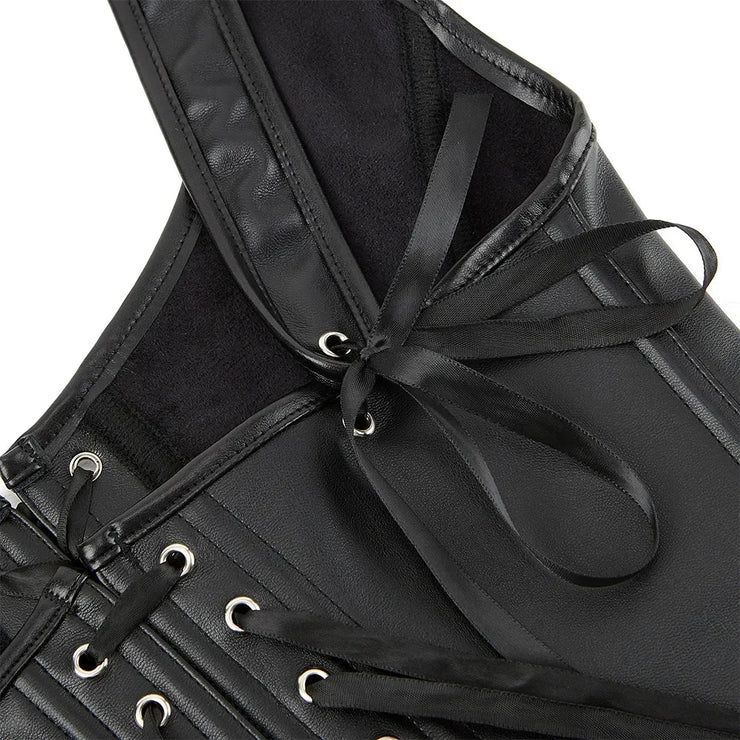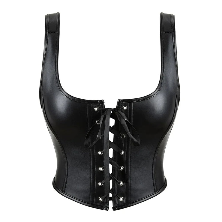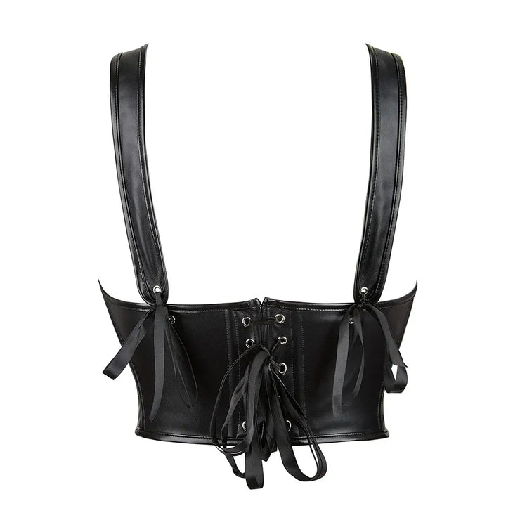 Women Gothic Corset Top Crop Bustier with Straps Faux Leather Push Up Bodice Sexy Party Short Camis Streetwear