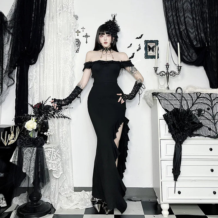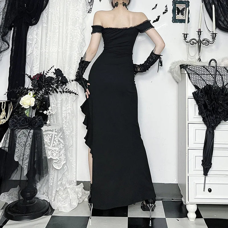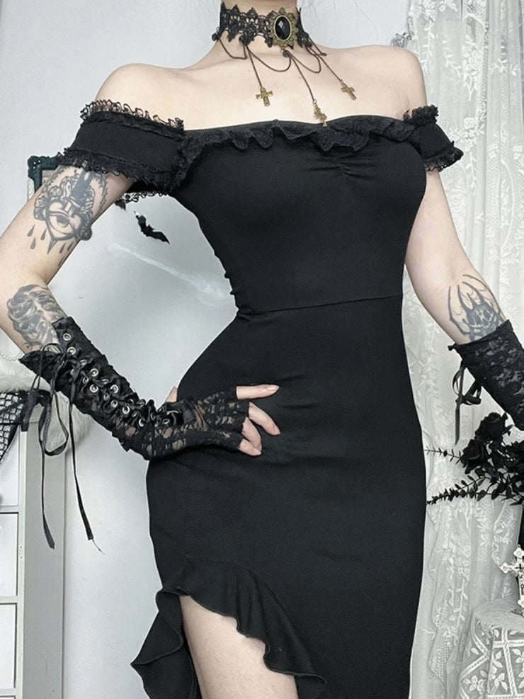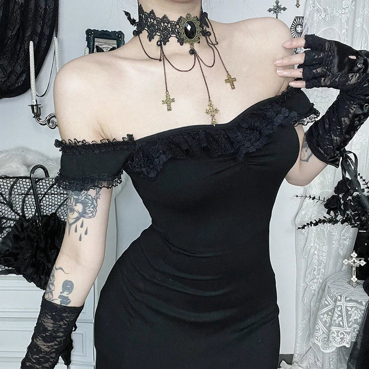 AltGoth Coquette Sexy Elegant Dress Women Gothic Dark Aesthetic Fairycore Grunge Off-the-shoulder Lace Patchwork Party Dresses