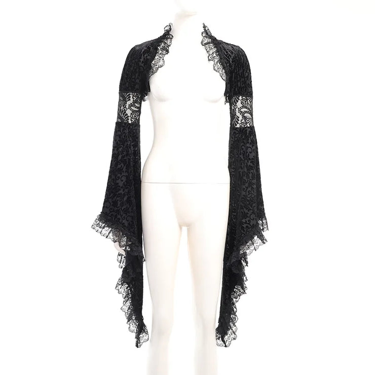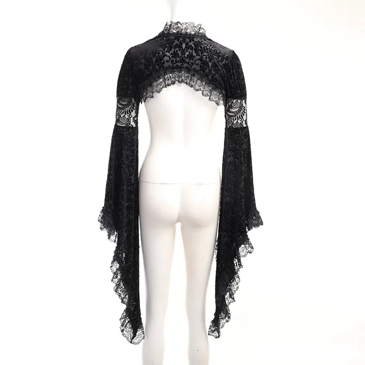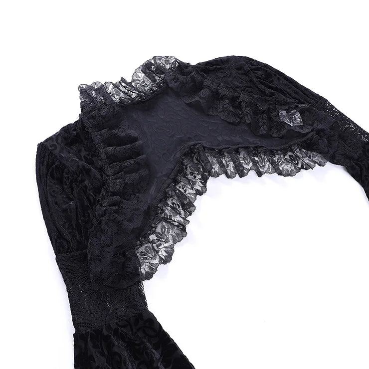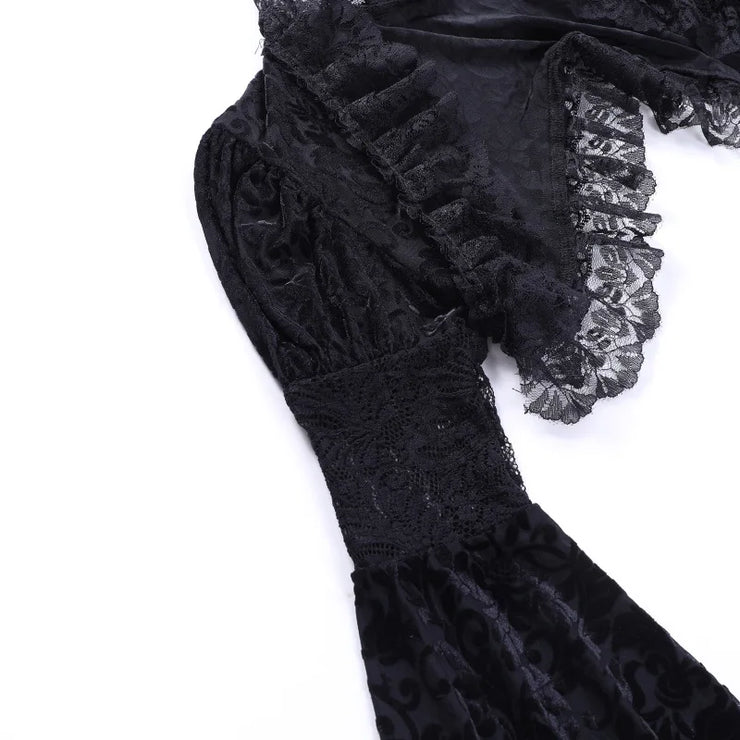 Goth Dark Elegant Evening Velvet Cheongsam Dresses Mall Gothic Lace Flare Sleeve Crop Tops Grunge Split Cut Out Partywear Dress
