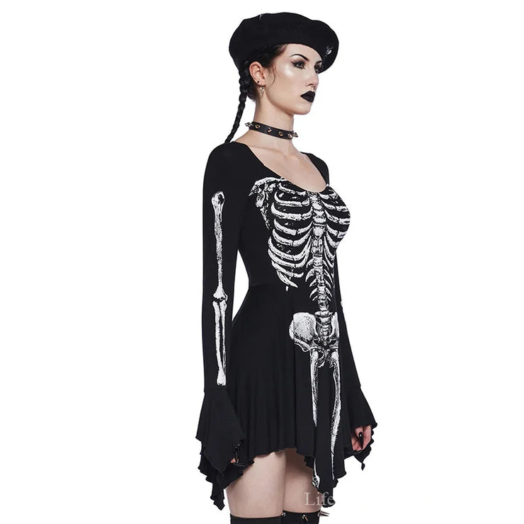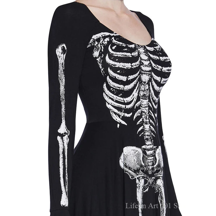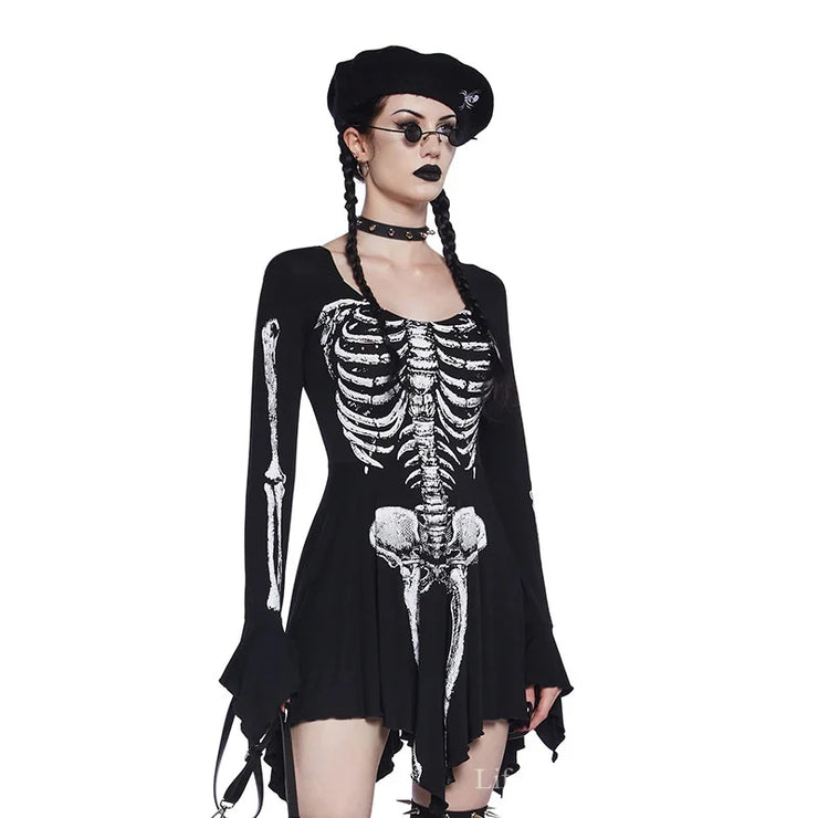 Halloween Gothic Women Dress Long Sleeve High Waist Cosplay Skull Dresses Goth Aesthetic 90s Egirl Sexy Slim Party Holiday Club