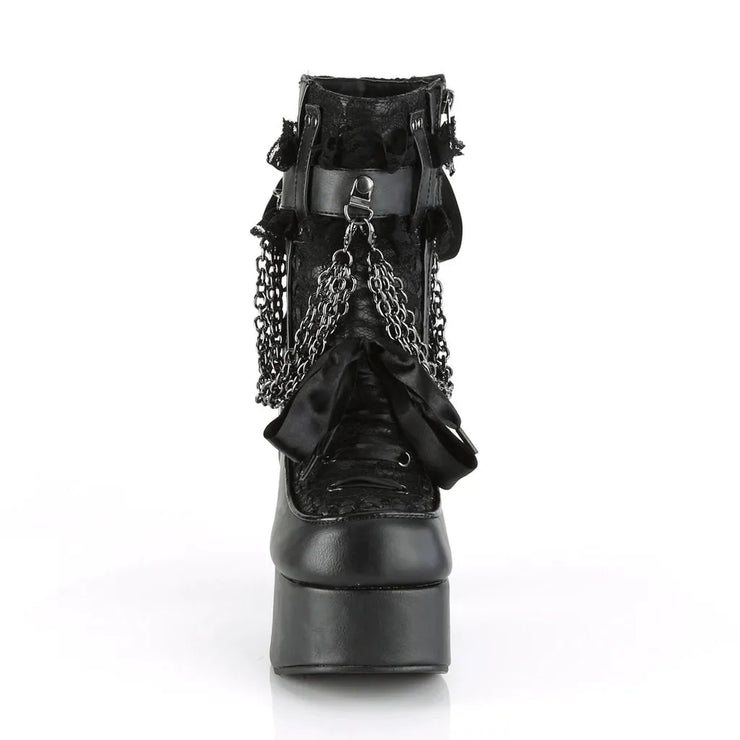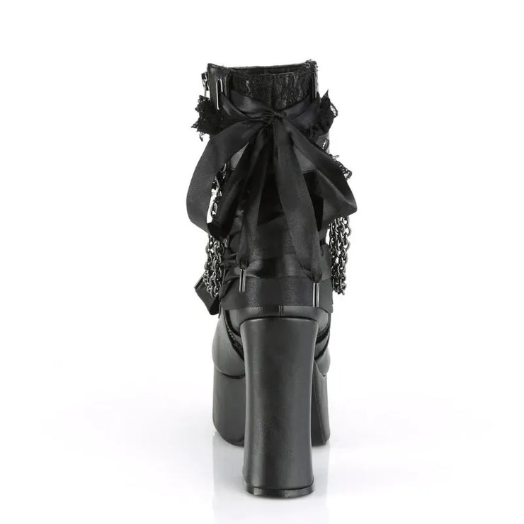 Gothic Style Chain Lace Up Bow Women Short Boots Retro Round Toe Square Heel Chunky Platform Ankle Boots Punk Ladies Party Shoes