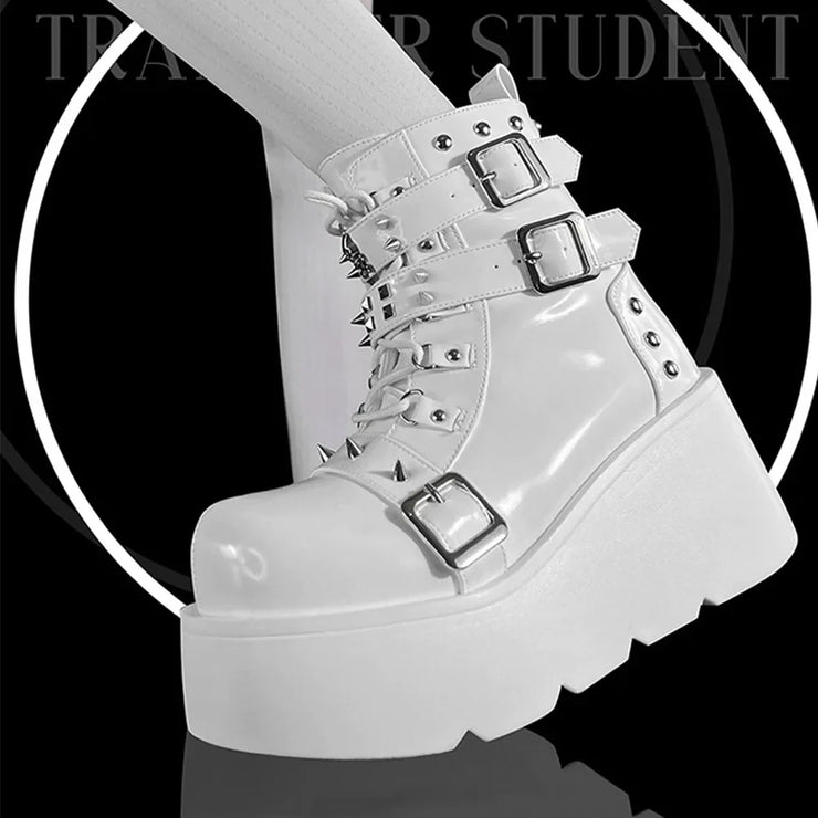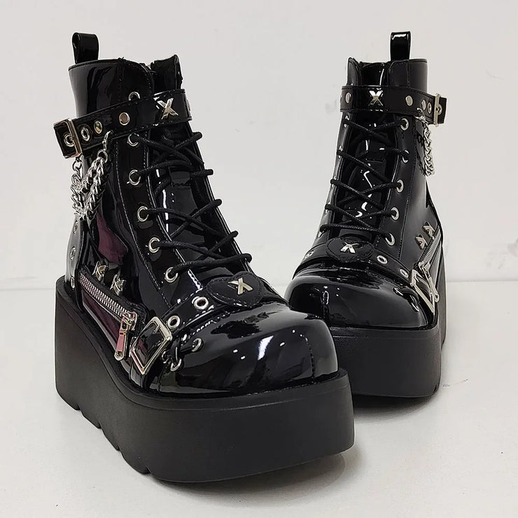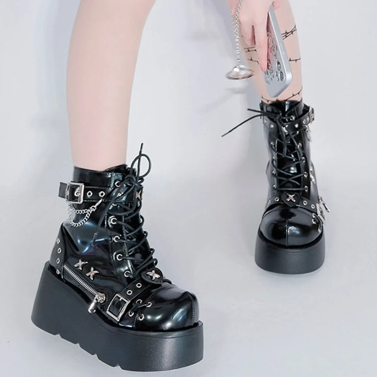 New Gothic Style Platform Vampire Cosplay Women Mid-calf Boots 2024 Winter Wedges Comfy Women Motorcycle Boots Shoes