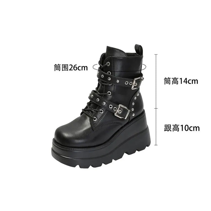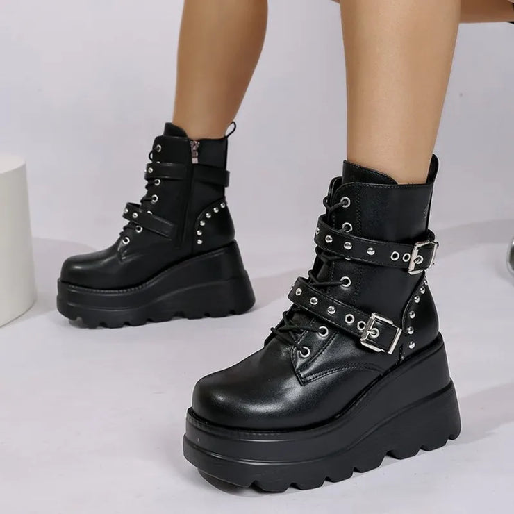 New Women's Pu Leather Ankle Boots Women Autumn Winter Round Toe Lace Up Shoes Woman Motorcycle Platform Botas Gothic Shoes