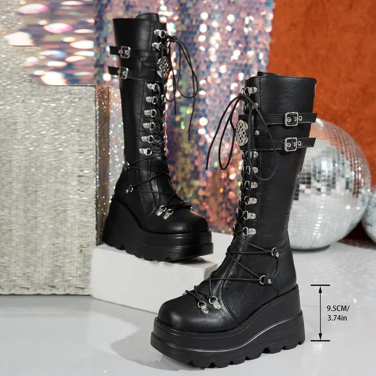 Winter 2025 Heightened Platform Knight Boots Women's Block Heel Mid-Leg Shoes