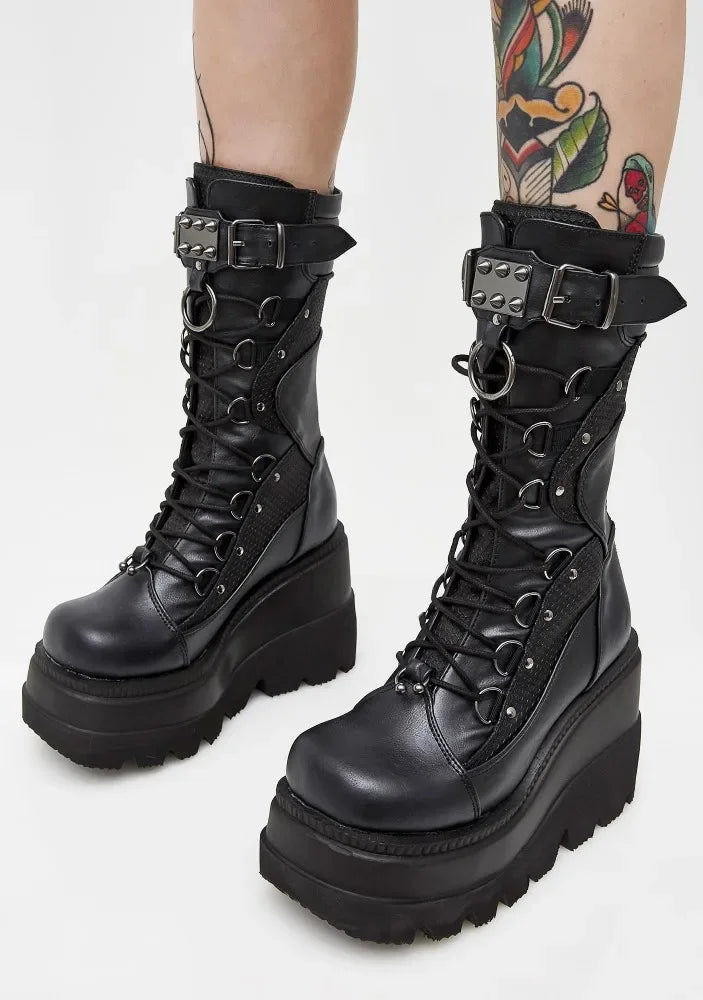 Women High Boots Cosplay Mid-calf Boots High Platform Wedges Boots 2024 Summer Autumn New Designer Gothic Shoes for Women Botas
