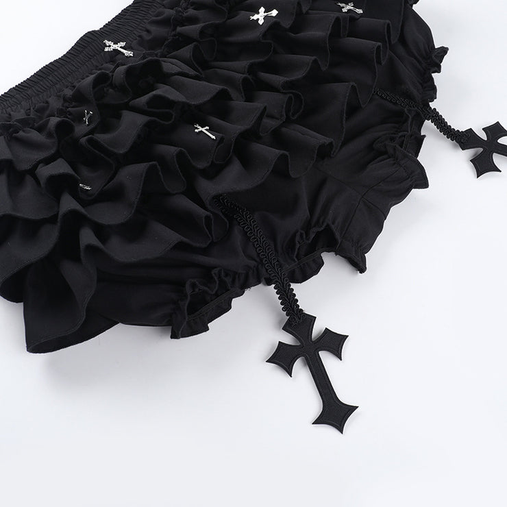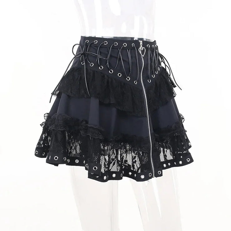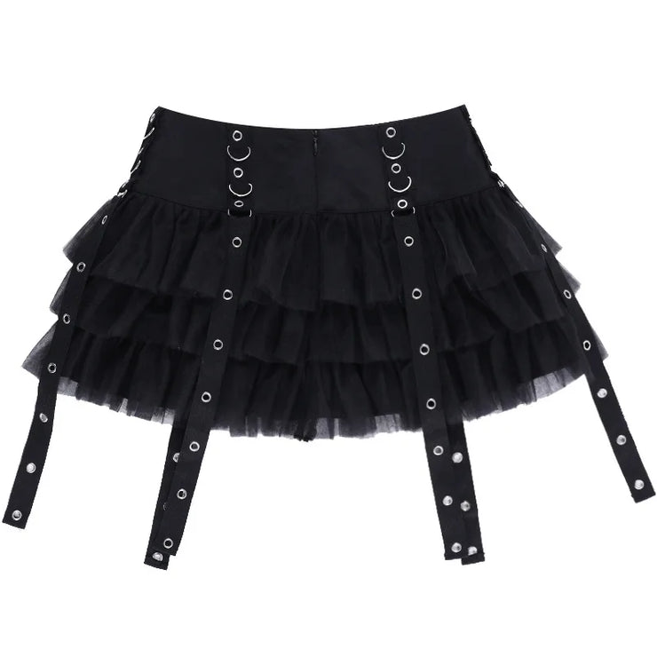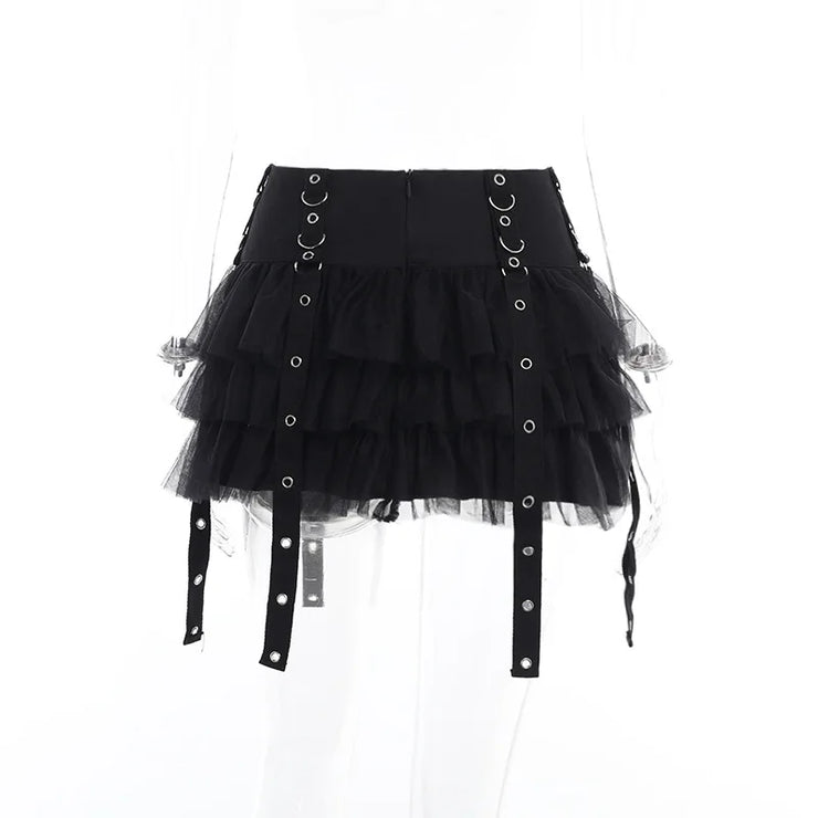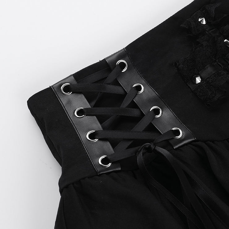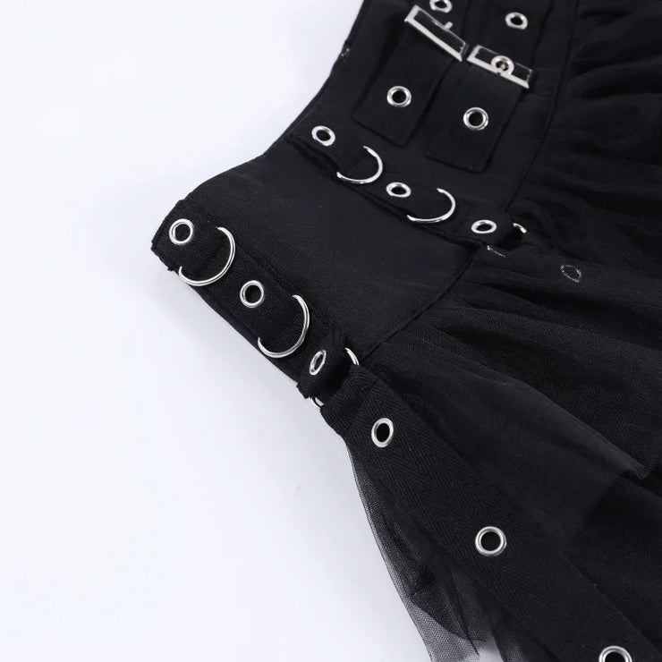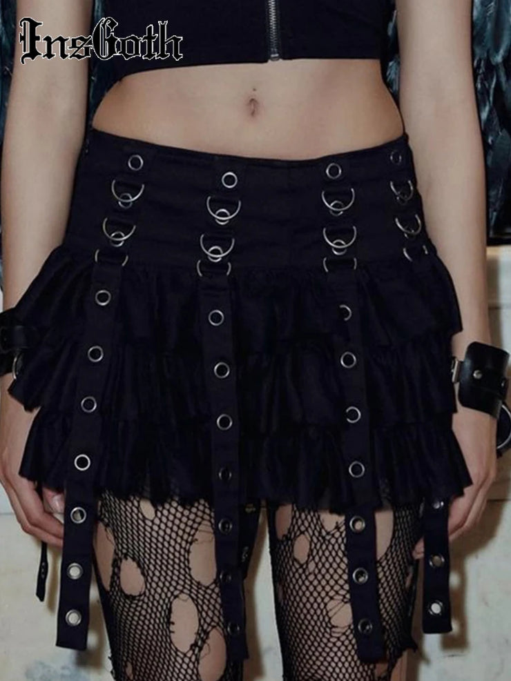 Black Women Punk High Waisted Goth Skirt Sexy Pleated Mini Skirt with Chain E Girl Lace-Up Tie PU Leather Corset Y2K Crop Tops