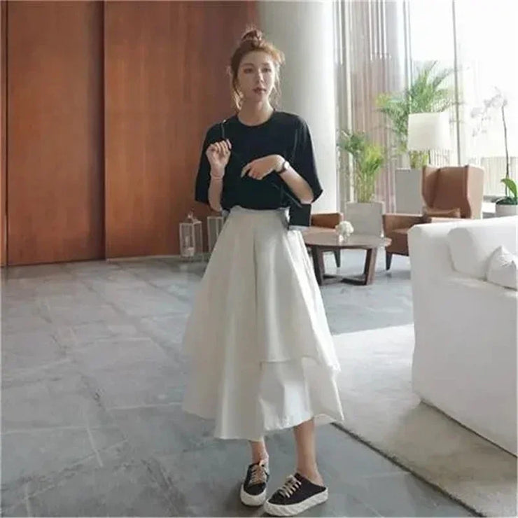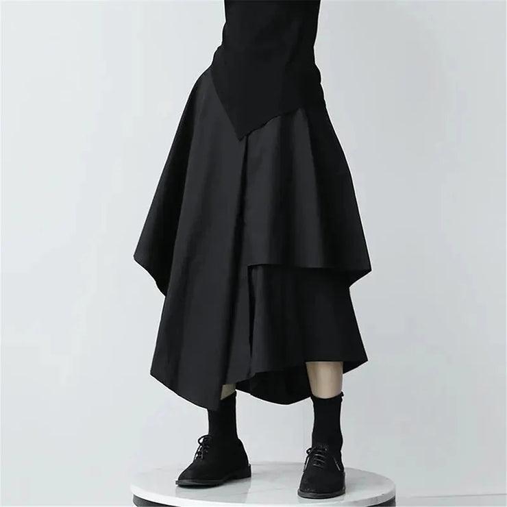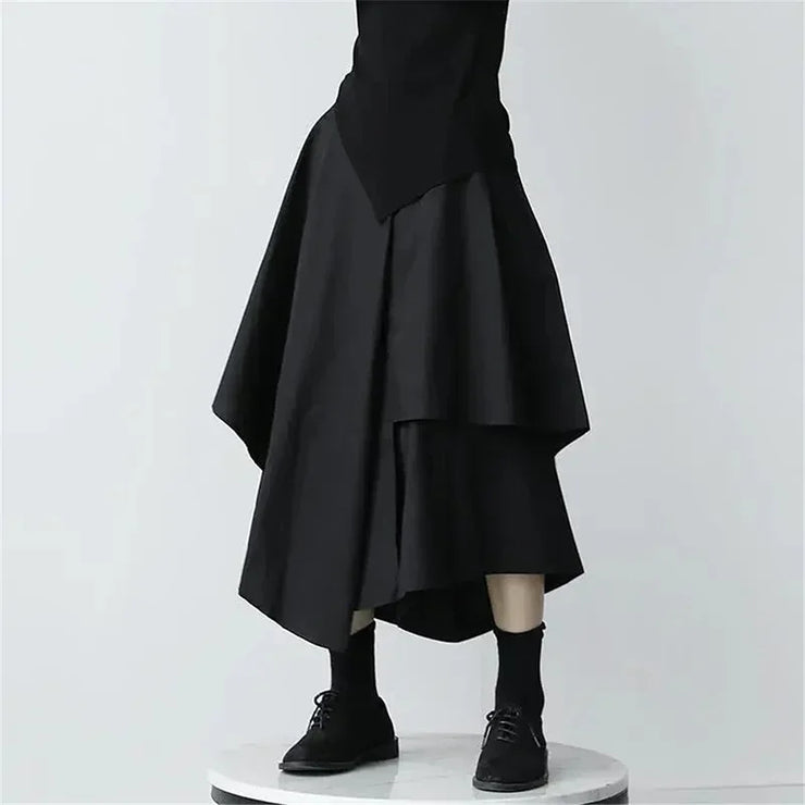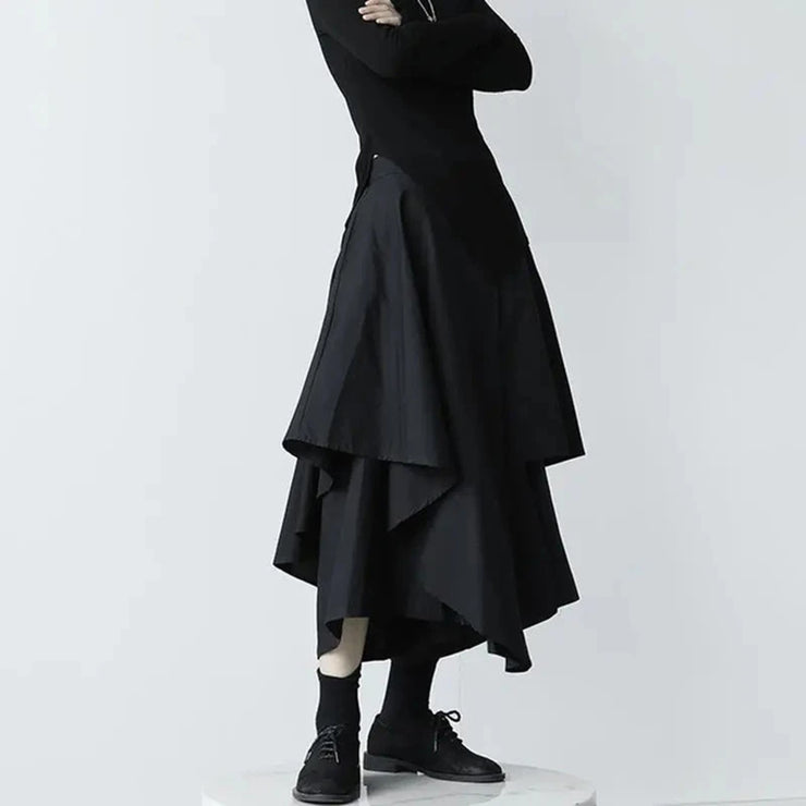 Gothic Irregular Skirts Women Y2K High Waist Cargo Midi Skirt Harajuku Vintage Punk Japanese Black Pleated Casual A Line Skirt