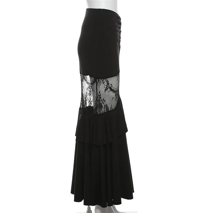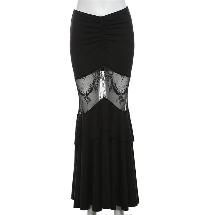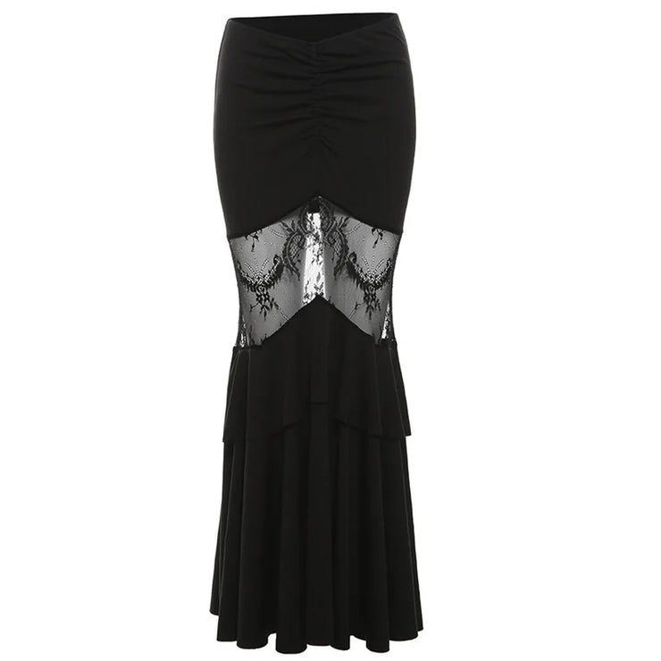 Gothic Mermaid Trumpet Skirt for Women Darkwear Sexy Hollow Out High Waist Slim Fit Fishtail Half Skirt Female Patchwork