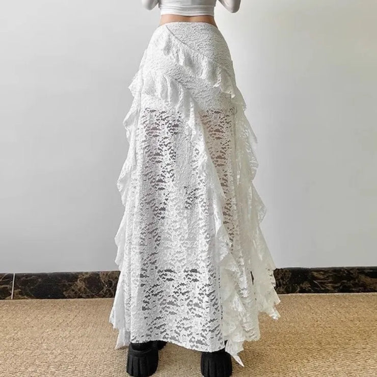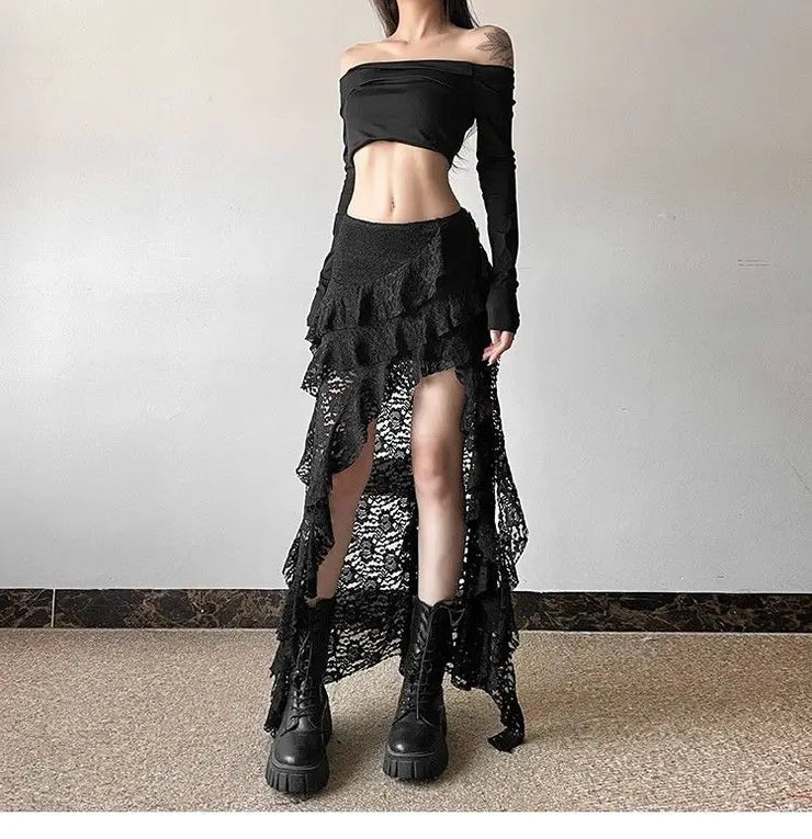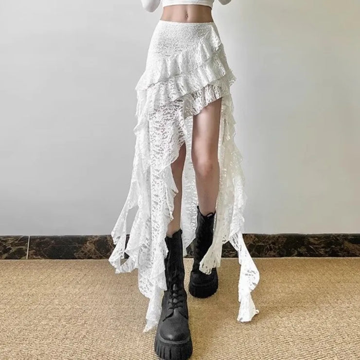 Gothic Skirt 2000s Summer Women's Clothes Gyaru Kpop Streetwear Lace High waist Casual Aesthetic Long Skrit Femme Hip hop Skirts