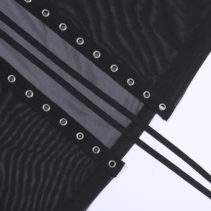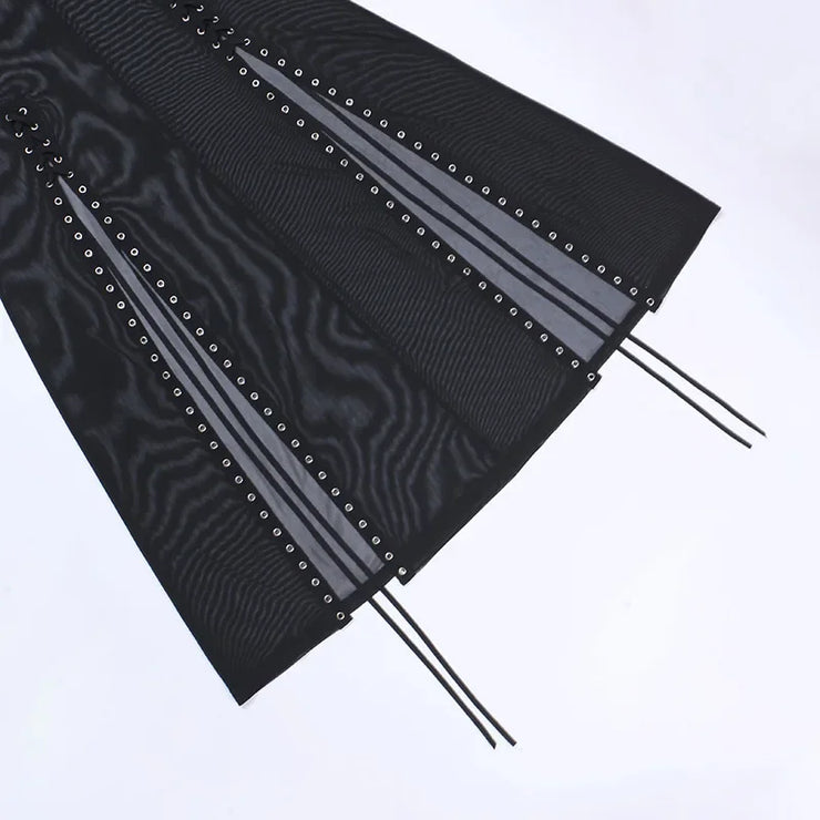 Harajuku Punk Black Hollow Out Skirt Y2K Goth Grunge Patchwork Eyelet Split Long Skirt Summer Sexy Night Club Skirt