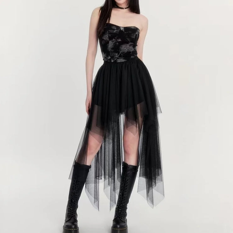 Sexy Gothic Skirts For Women Hotsweet Irregular Mesh Black Skirt Streetwear Elastic Waist Front Short Back Long Y2K Lady's Skirt