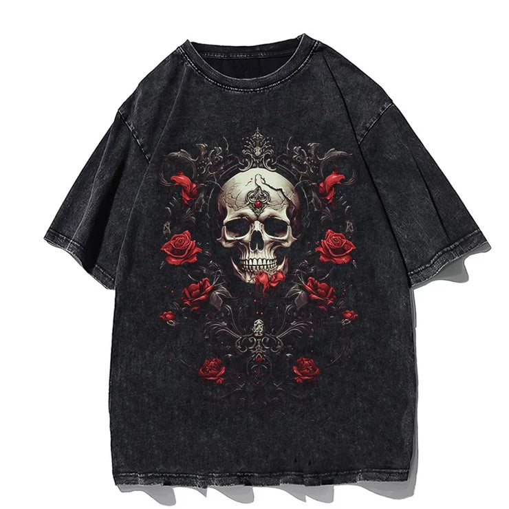 Gothic Hip Hop Print Tee Men Women Clothing Fashion Cool Classic O-collar Gothic Print T Shirt Summer Y2K Vintage Washed T-shirt