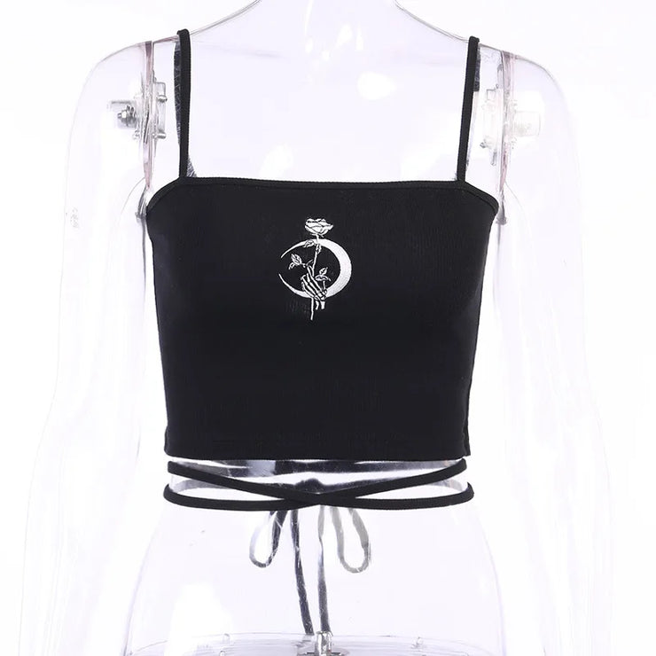 Gothic Women's Print Suspender Sleeveless Square Neck Slim Crop Top Sexy Halter Bottoming Shirt 2022 Girls Party Wear